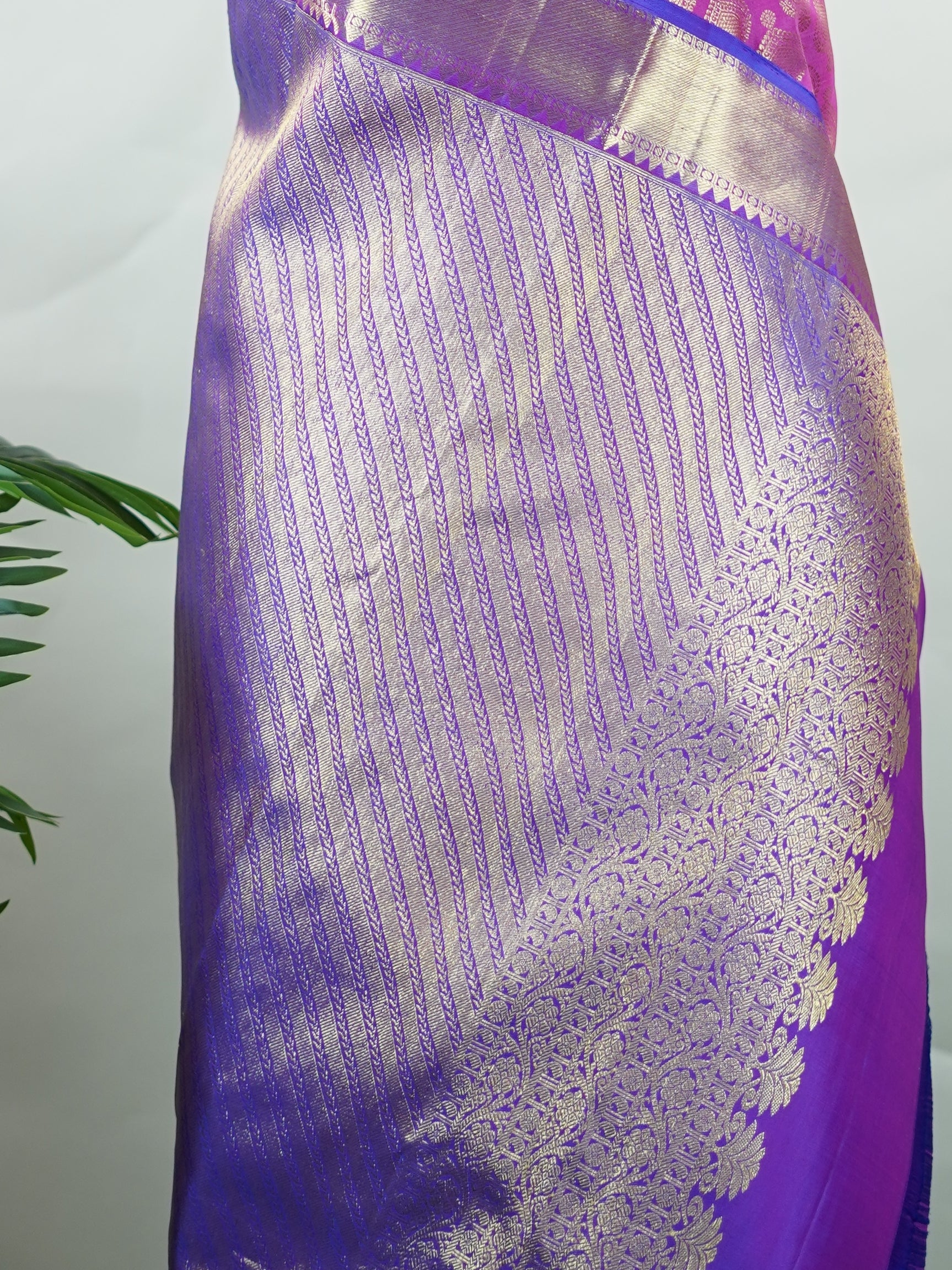 Our sarees are 100% Pure and they are all handwoven, unless mentioned otherwise in the saree description. So we request you to please read the saree specifications carefully. In a few of the sarees, there would be cross weaving between the body and the pallu, which is quite natural and is a sign of pure handlooms