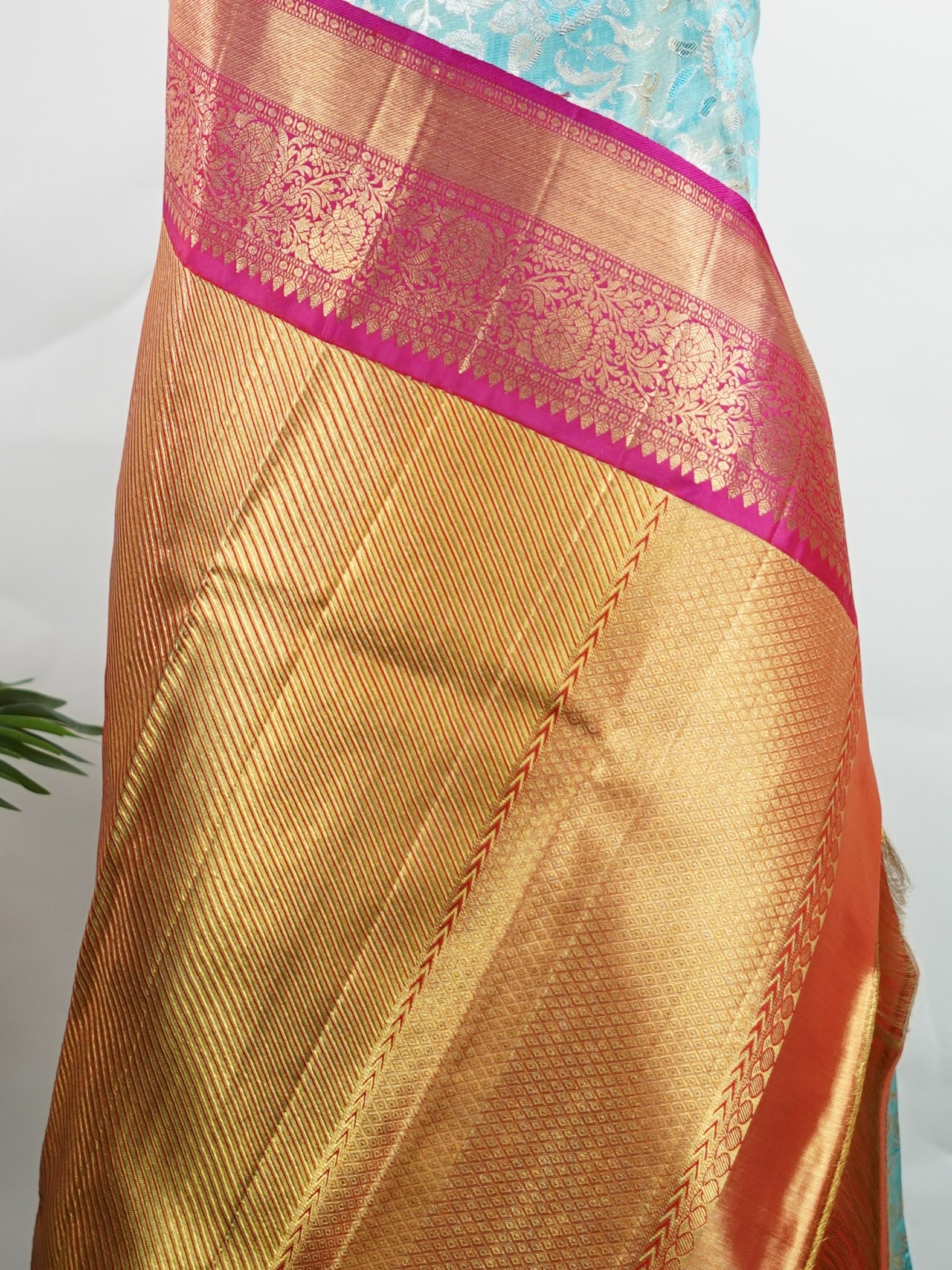 Our sarees are 100% Pure and they are all handwoven, unless mentioned otherwise in the saree description. So we request you to please read the saree specifications carefully. In a few of the sarees, there would be cross weaving between the body and the pallu, which is quite natural and is a sign of pure handlooms