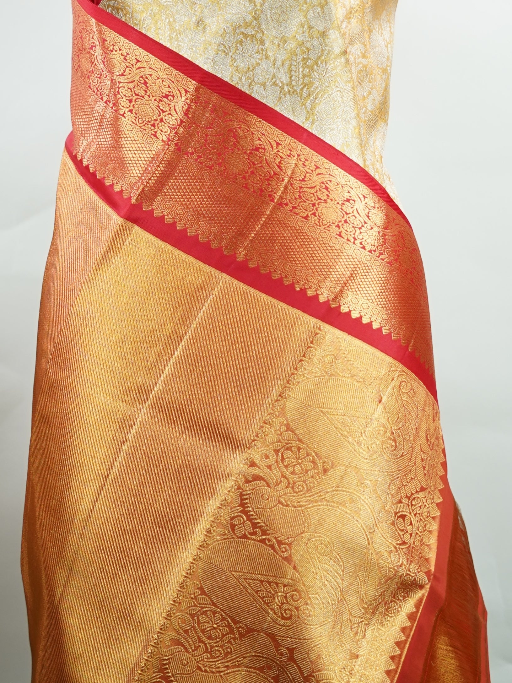 Our sarees are 100% Pure and they are all handwoven, unless mentioned otherwise in the saree description. So we request you to please read the saree specifications carefully. In a few of the sarees, there would be cross weaving between the body and the pallu, which is quite natural and is a sign of pure handlooms