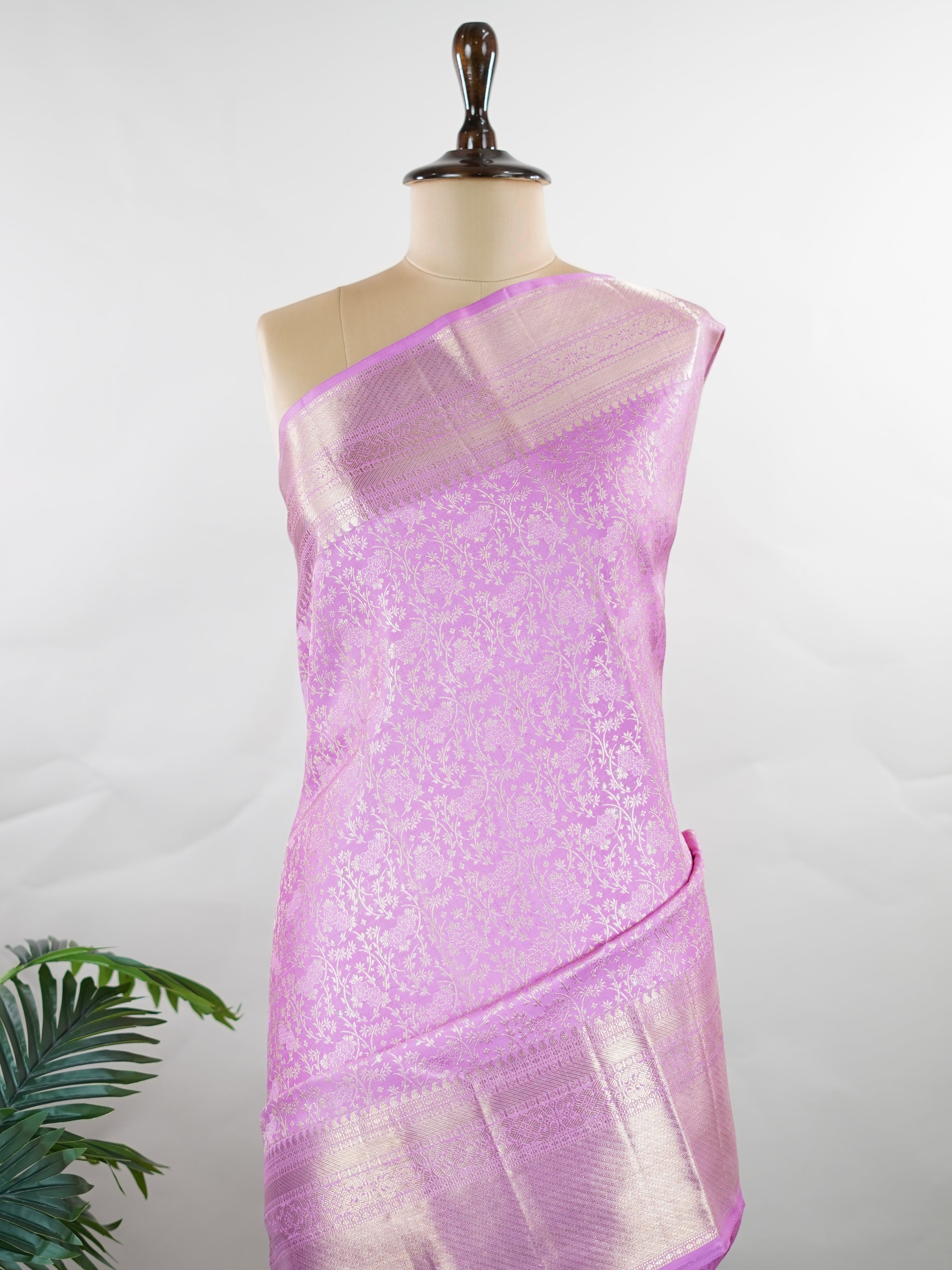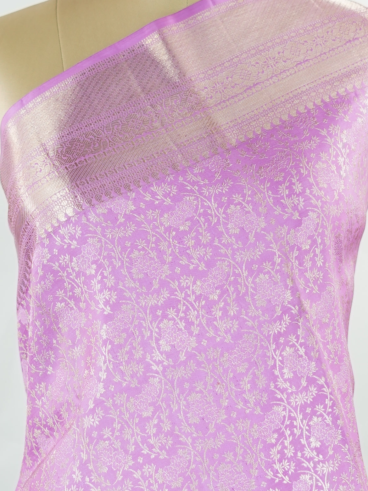 This 100% Pure Silk silk saree, adorned in Peony Pink and detailed with Pure Zari weaving, reflects the grandeur of Maharashtra. The timeless Buttis motifs enhance its bridal charm. A perfect blend of luxury and tradition, it is designed for those who appreciate fine craftsmanship.