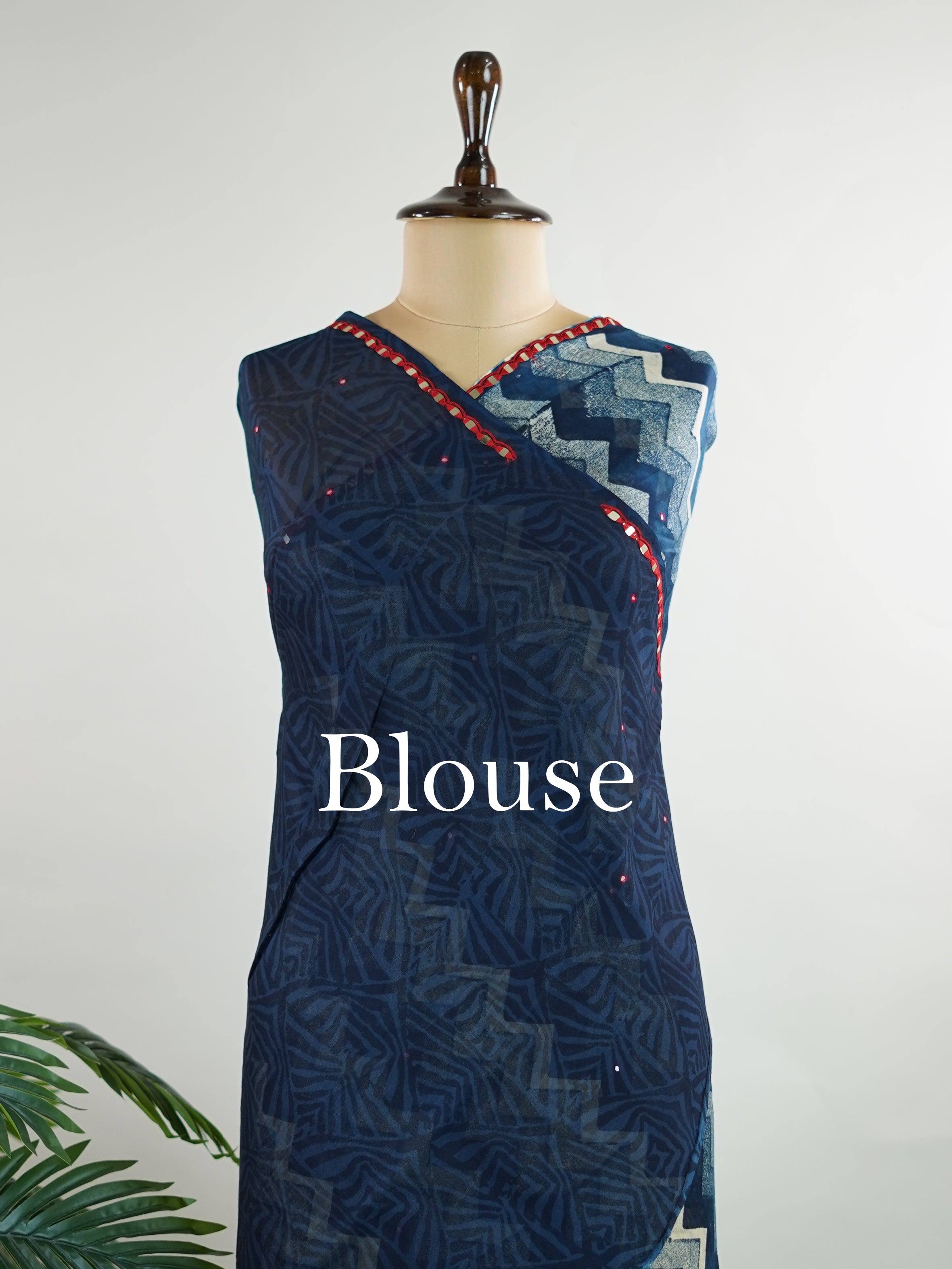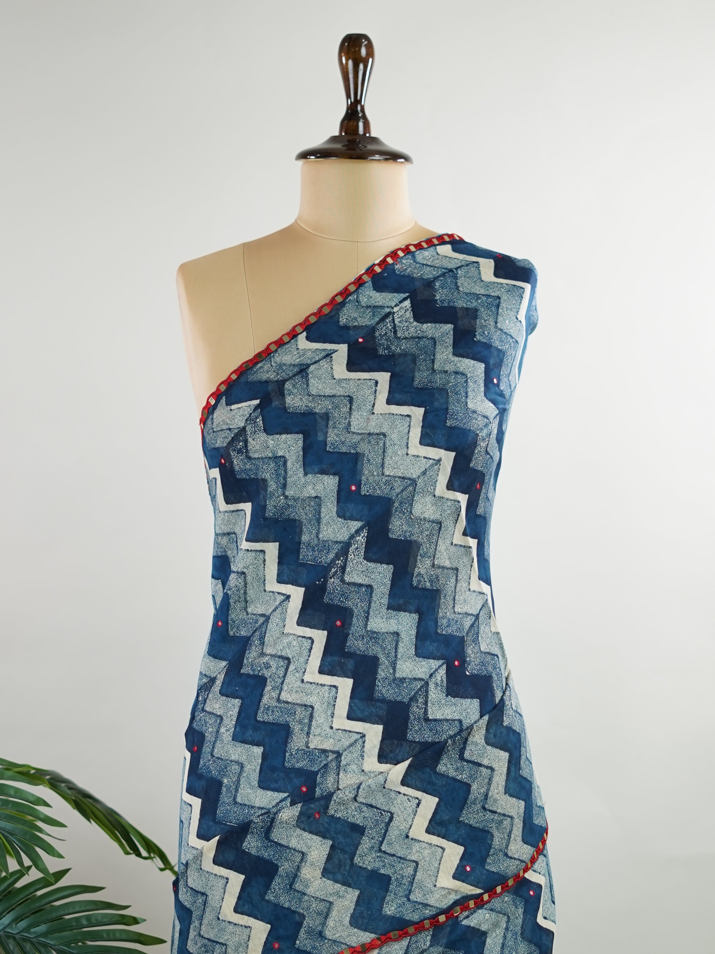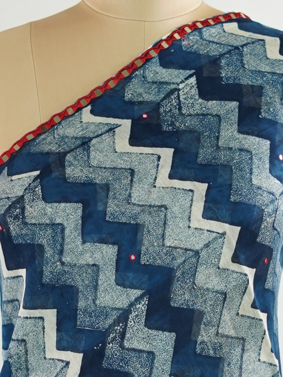 A breezy Cotton Kota Doria saree adorned with delicate handblock prints and glistening mirror work—light as air, rich in tradition.