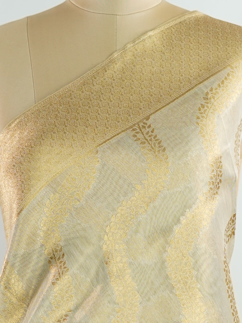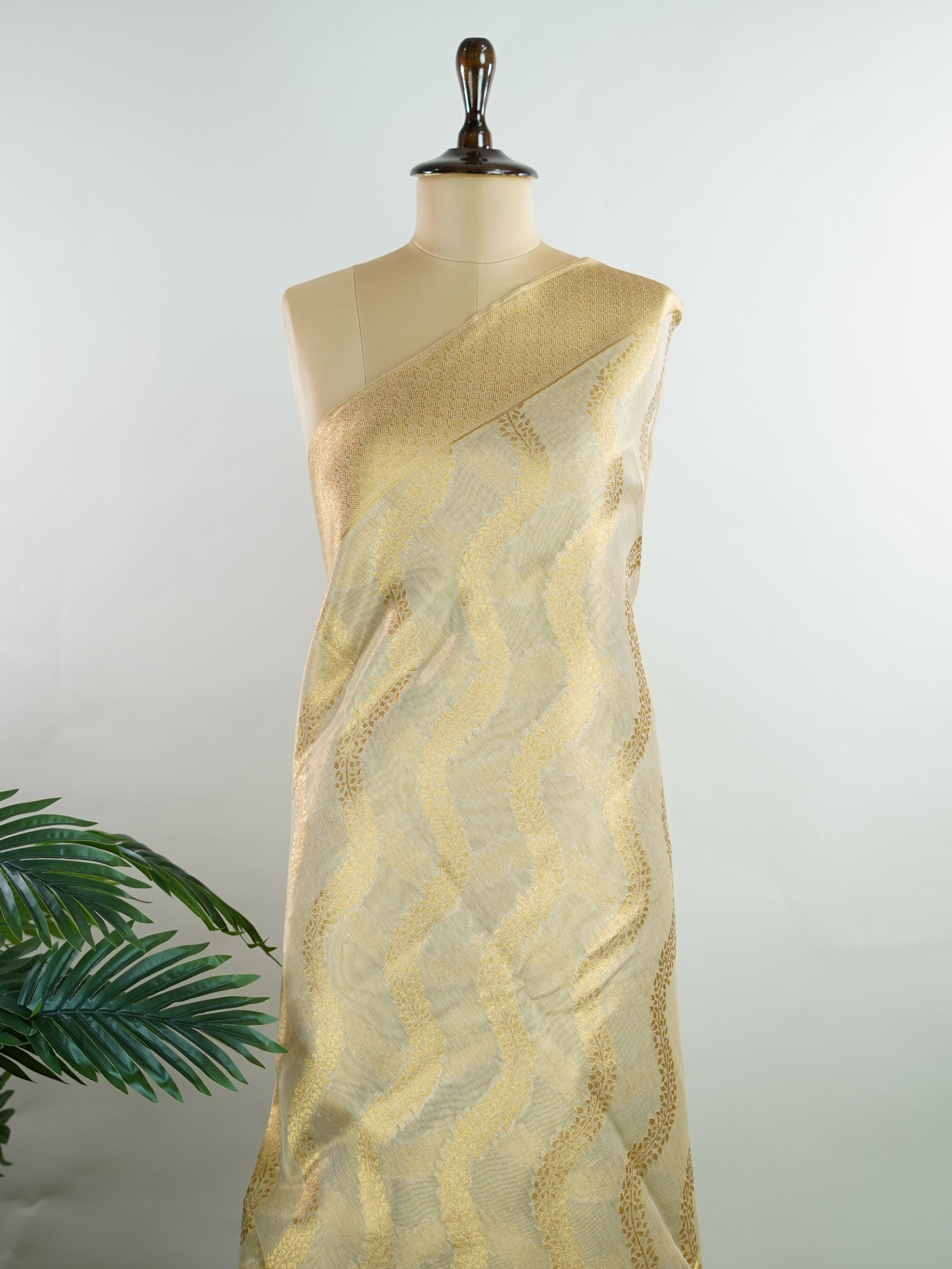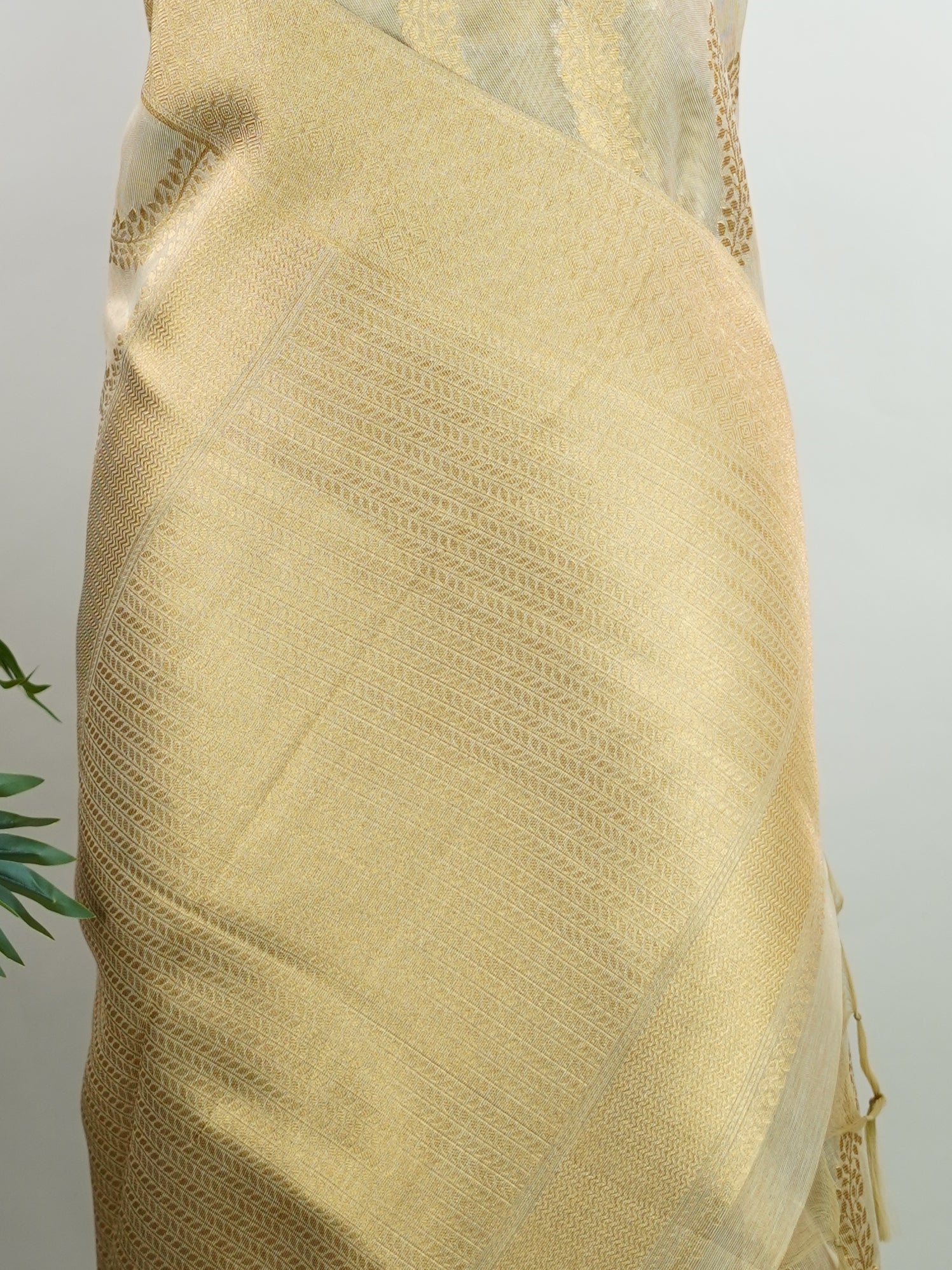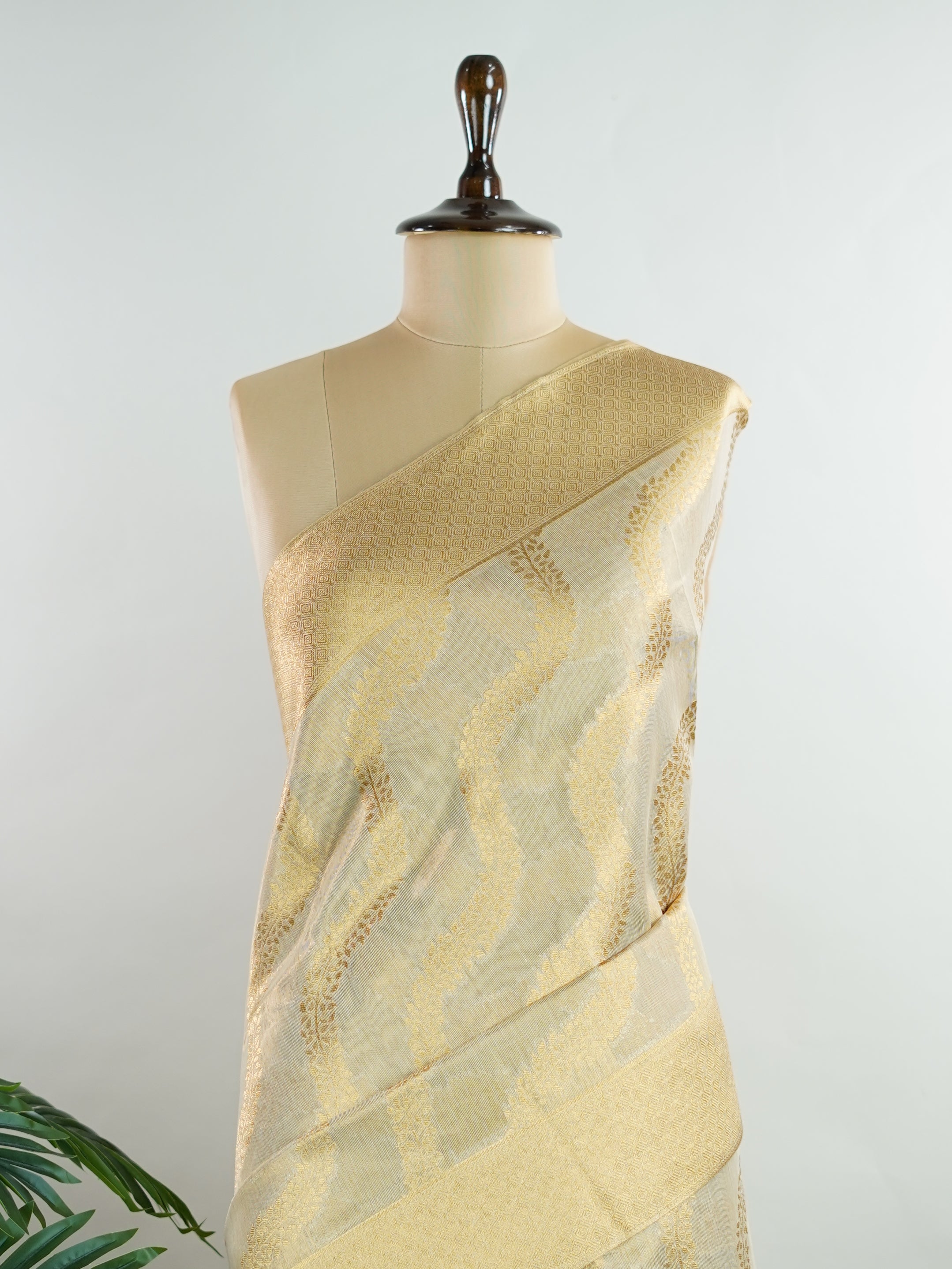 This Kora Semi Tissue saree in rich gold features elegant stripes woven with fine zari. Lightweight and luminous, it captures the essence of festive finesse. Crafted in Varanasi, it drapes with ease and radiance. A timeless choice for celebrations with subtle grandeur. #KoraSemiTissue #GoldStripes #FineZari #VaranasiWeaves #ManoranjithamSarees