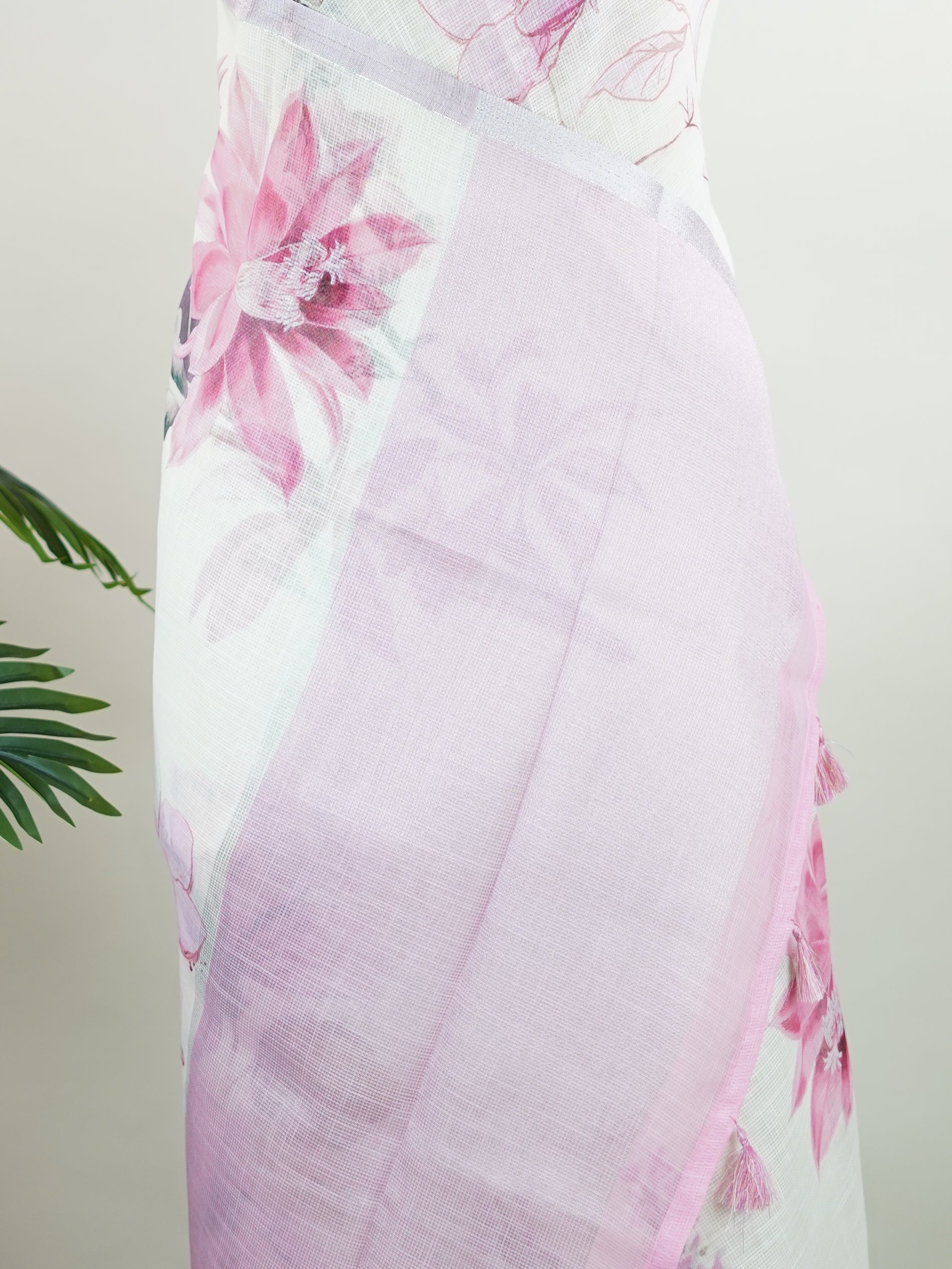 #SilkKota #FloralElegance #WhiteSareeCharm #FineZariWeave #ManoranjithamSarees