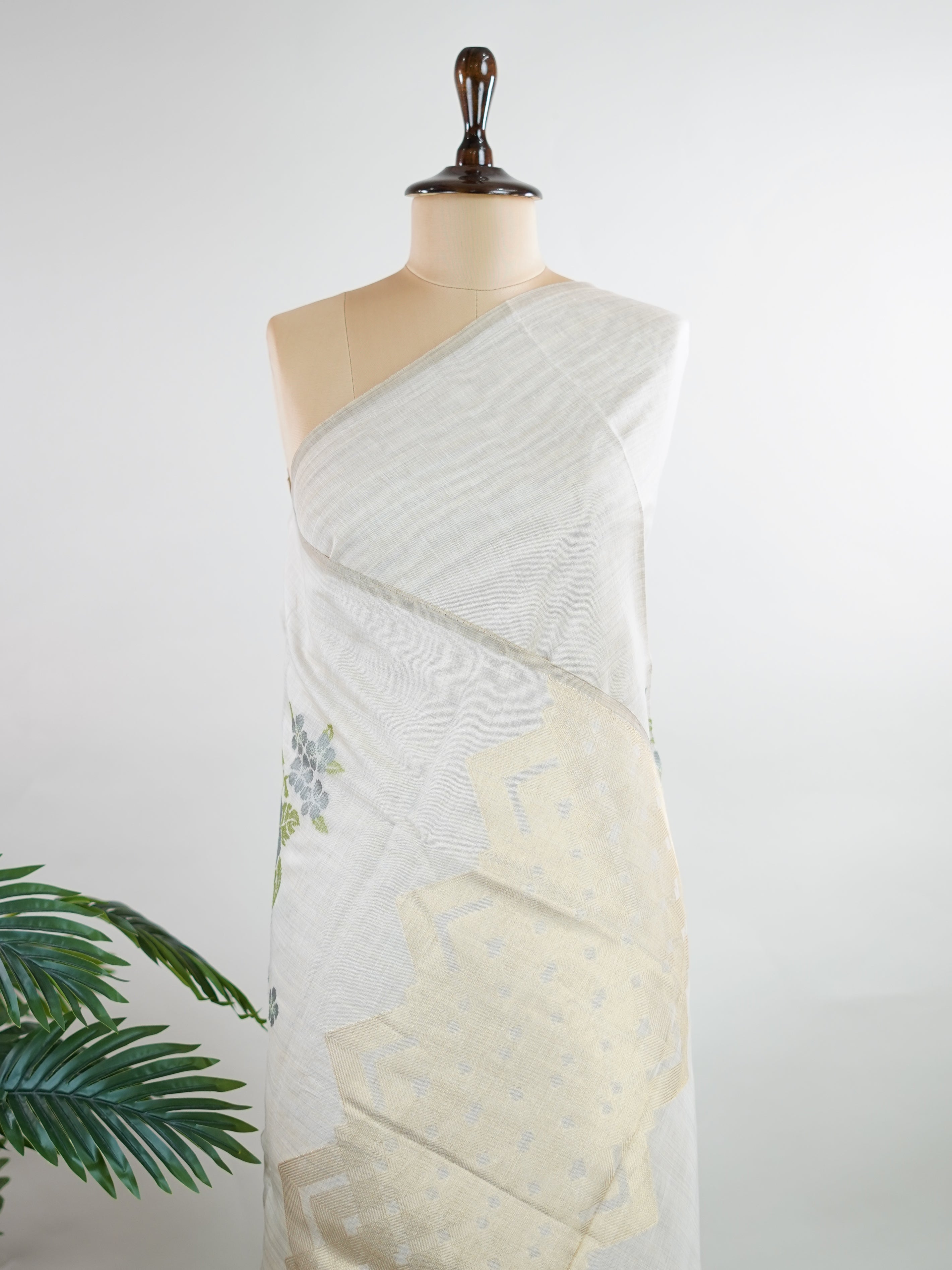 In soothing grey, this 100% Pure Cotton saree brings quiet beauty to everyday wear.