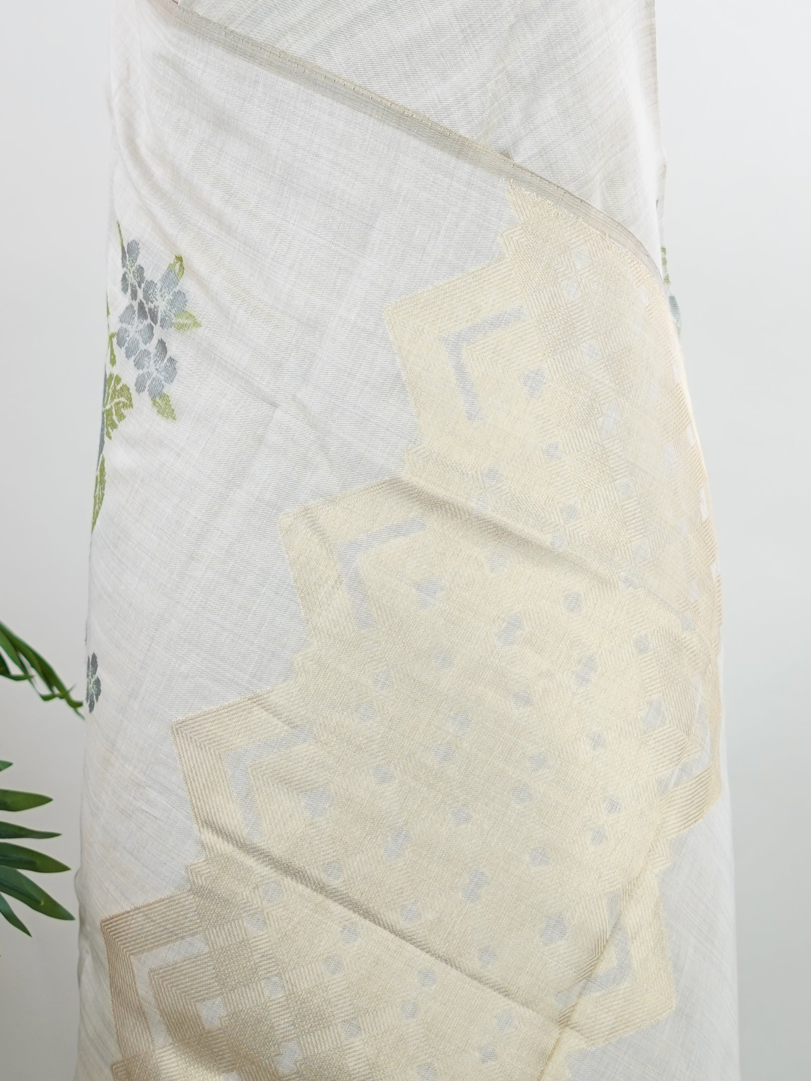 #PureCottonSaree #GreyElegance #FloralMotifs #VaranasiWeaves #ManoranjithamSarees