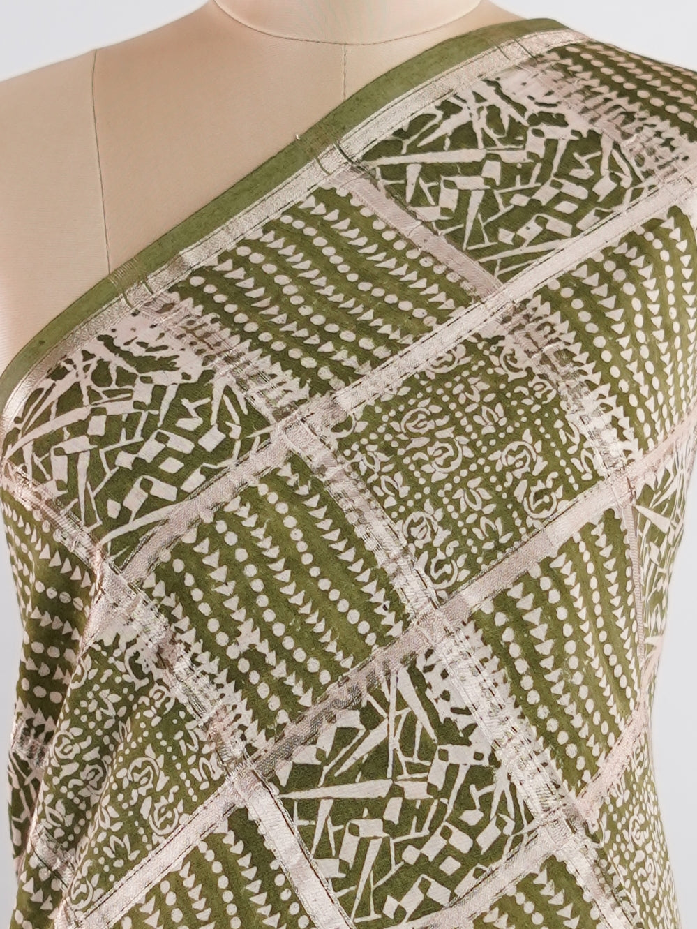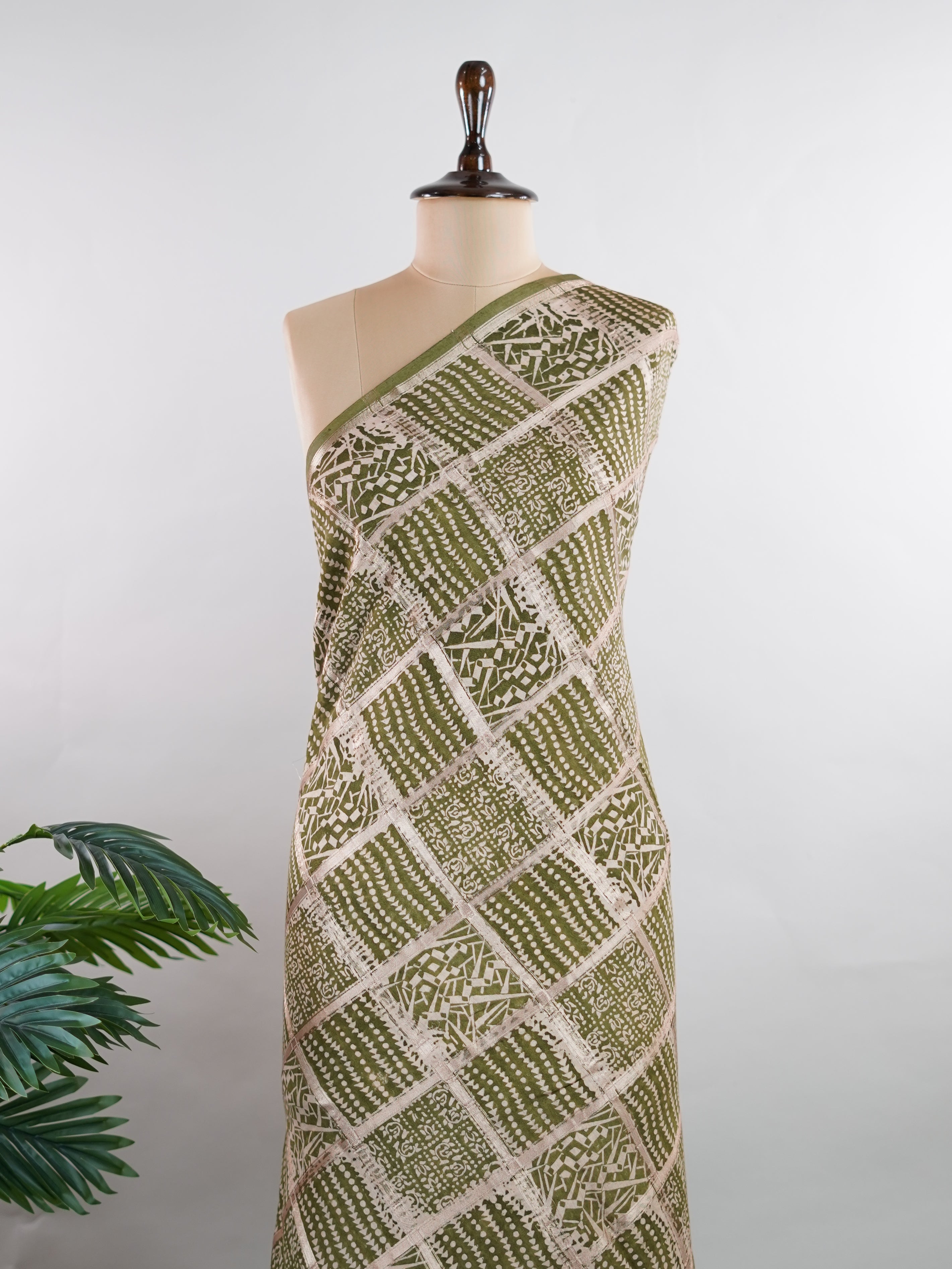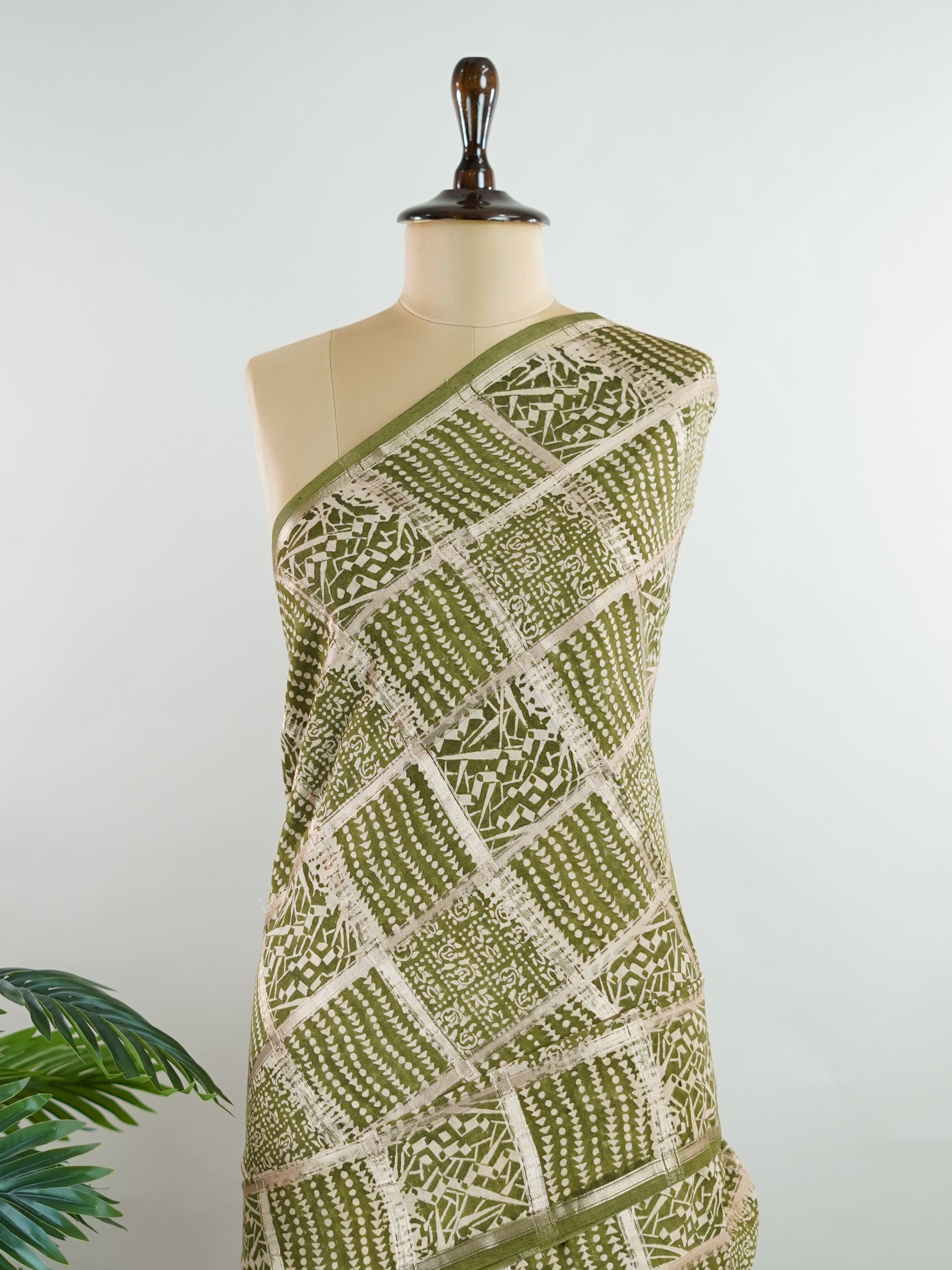Soothing green cotton, touched with delicate gold block prints from Varanasi.