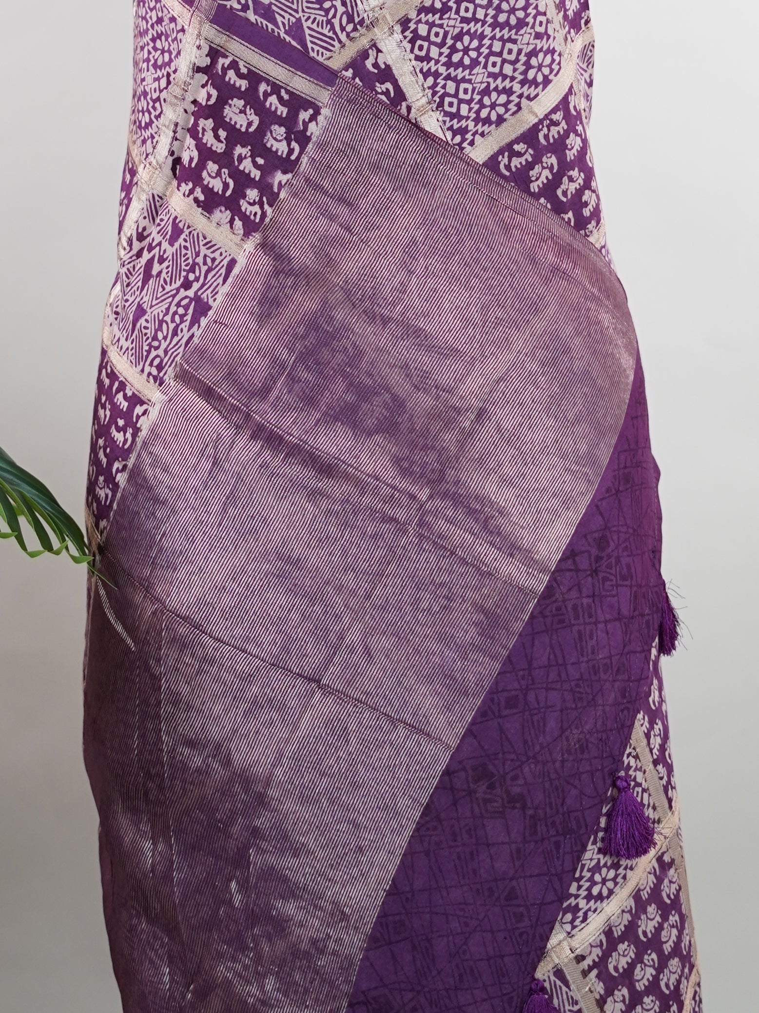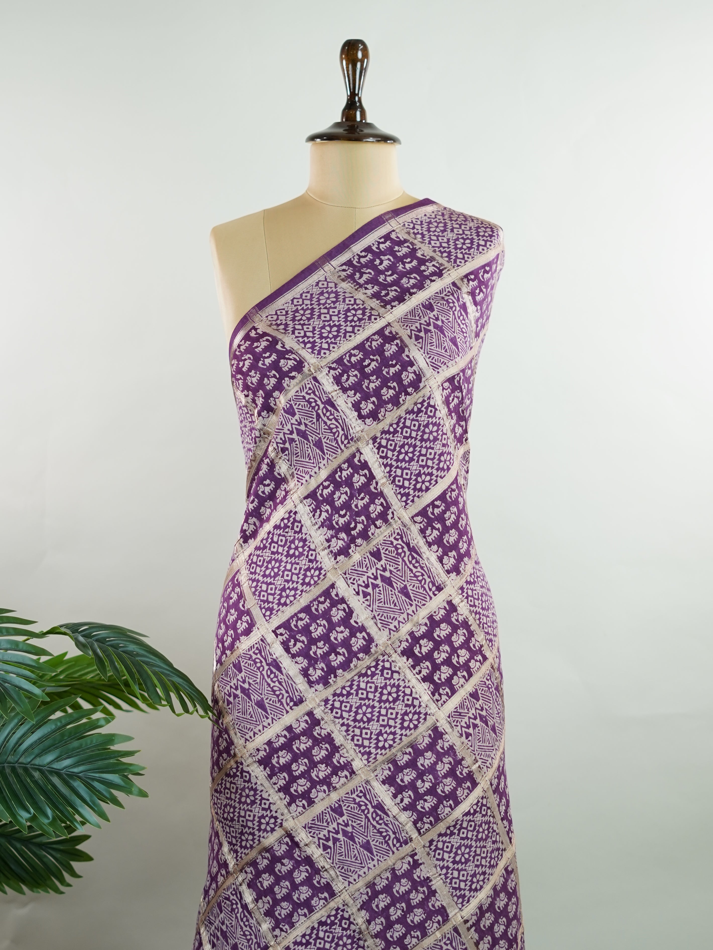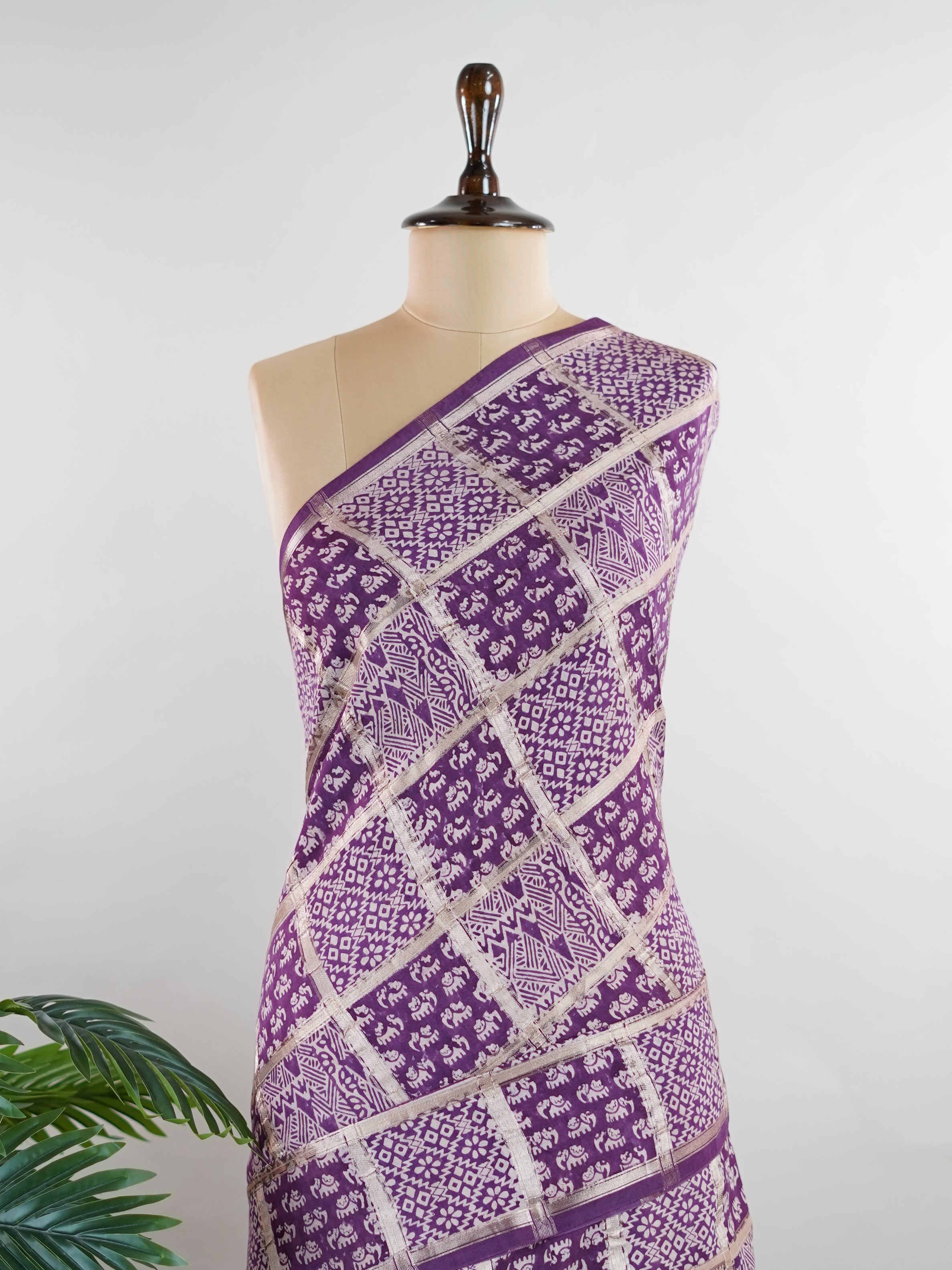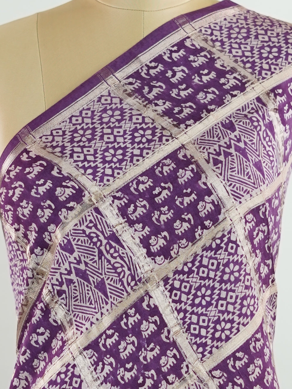 A deep purple canvas brought to life with traditional gold block prints.