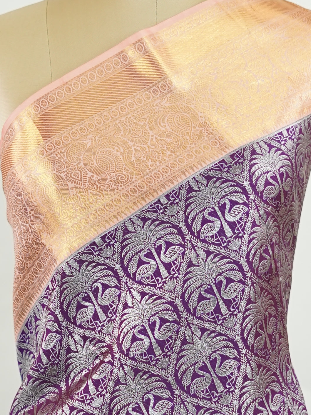 Our sarees are 100% Pure and they are all handwoven, unless mentioned otherwise in the saree description. So we request you to please read the saree specifications carefully. In a few of the sarees, there would be cross weaving between the body and the pallu, which is quite natural and is a sign of pure handlooms