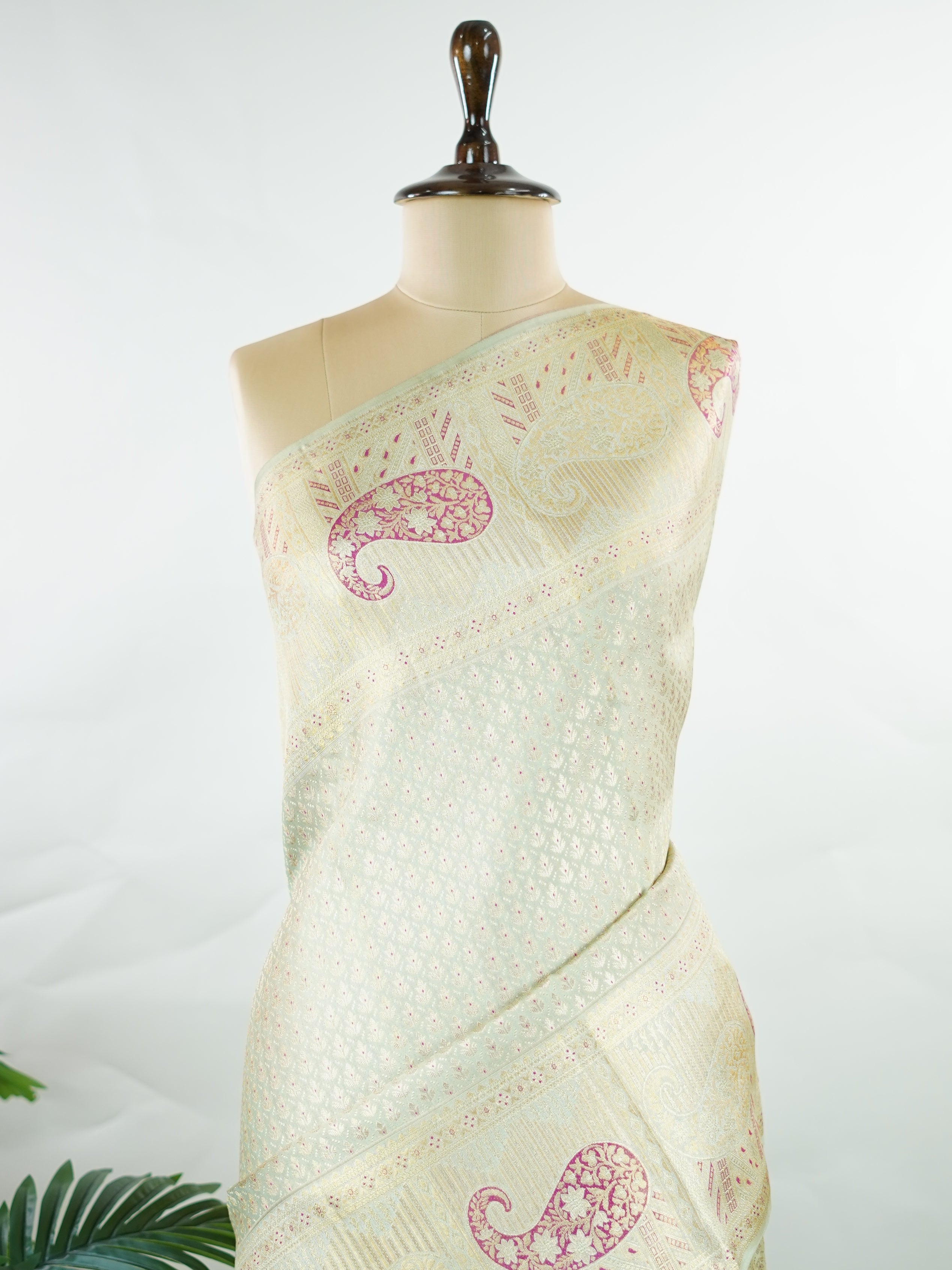 Our sarees are 100% Pure and they are all handwoven, unless mentioned otherwise in the saree description. So we request you to please read the saree specifications carefully. In a few of the sarees, there would be cross weaving between the body and the pallu, which is quite natural and is a sign of pure handlooms