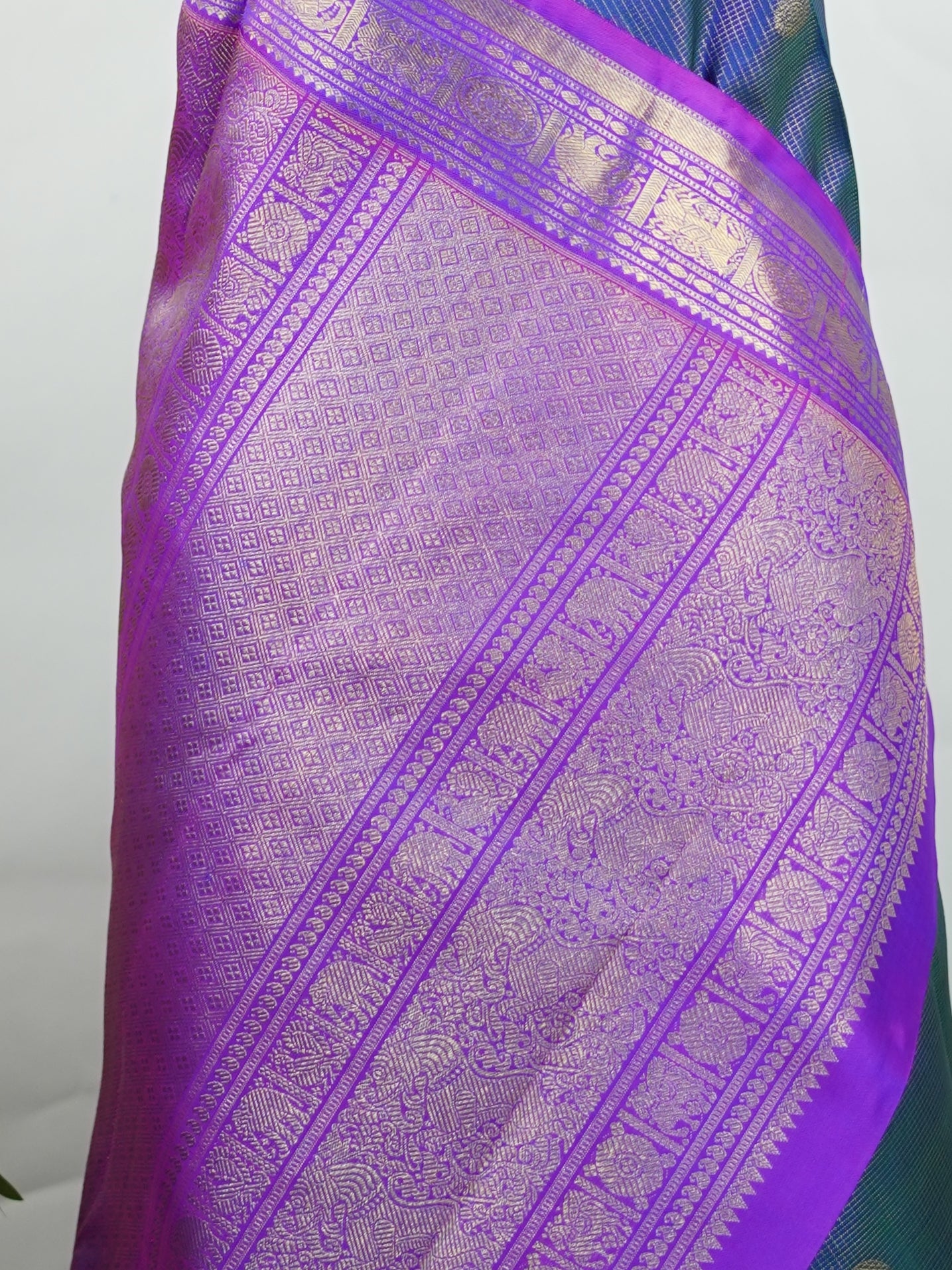Our sarees are 100% Pure and they are all handwoven, unless mentioned otherwise in the saree description. So we request you to please read the saree specifications carefully. In a few of the sarees, there would be cross weaving between the body and the pallu, which is quite natural and is a sign of pure handlooms