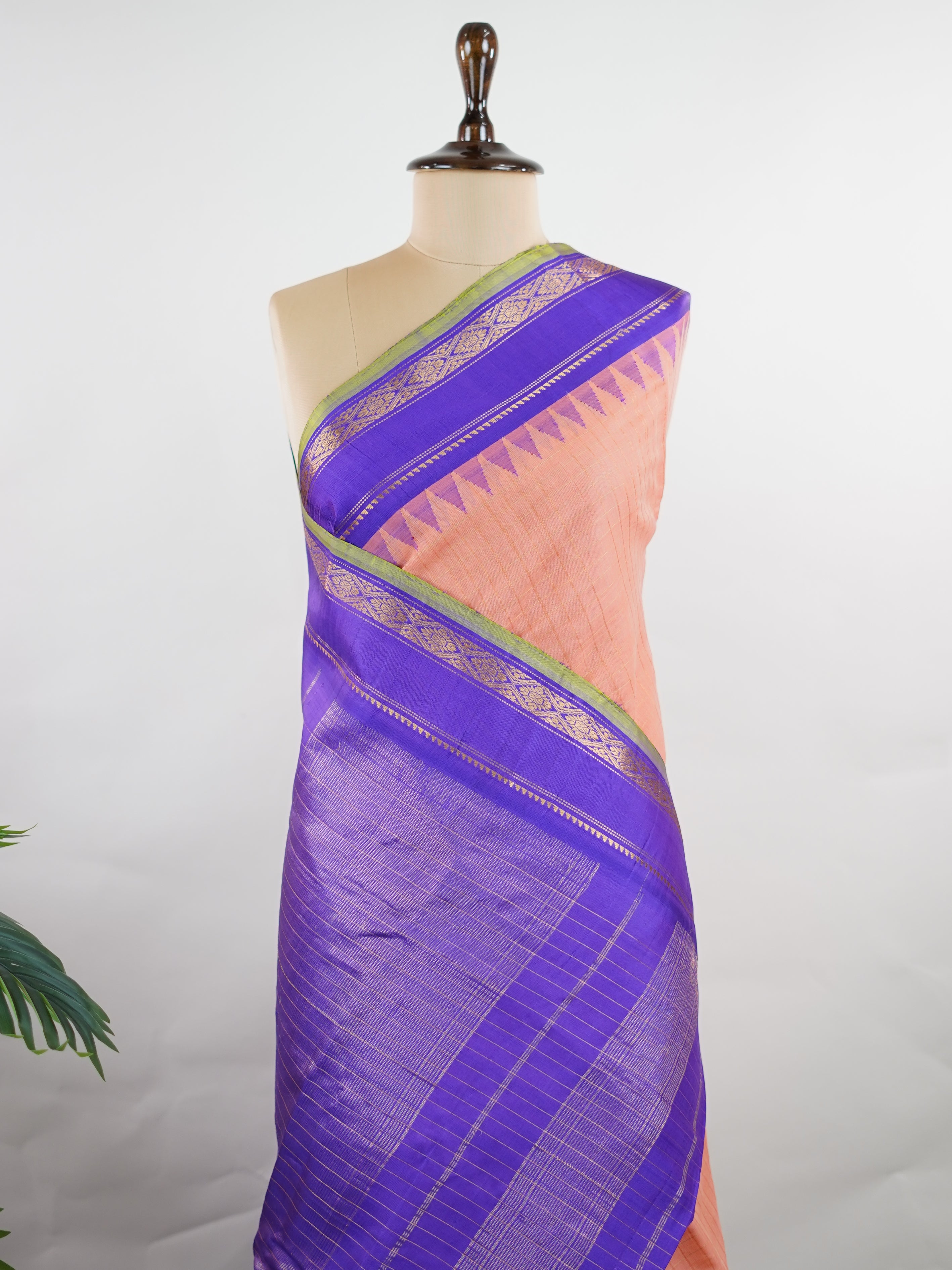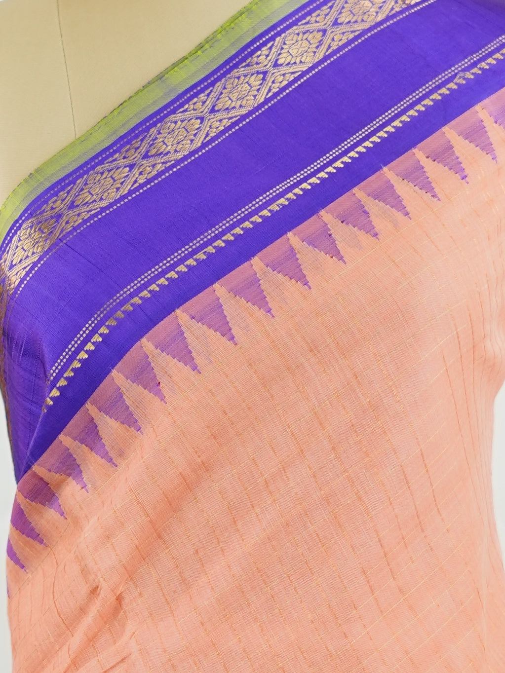 Our sarees are 100% Pure and they are all handwoven, unless mentioned otherwise in the saree description. So we request you to please read the saree specifications carefully. In a few of the sarees, there would be cross weaving between the body and the pallu, which is quite natural and is a sign of pure handlooms