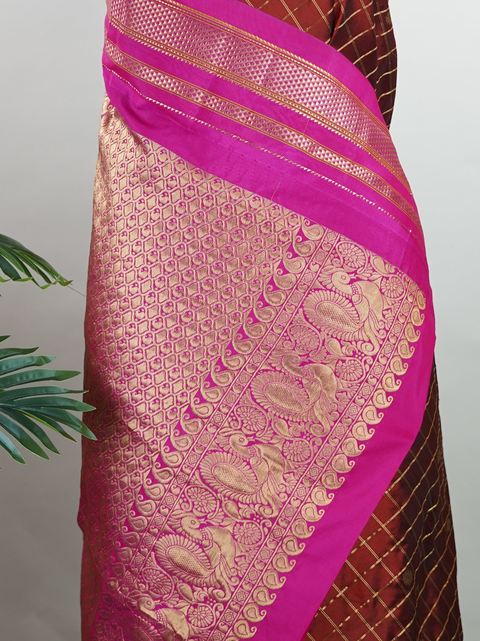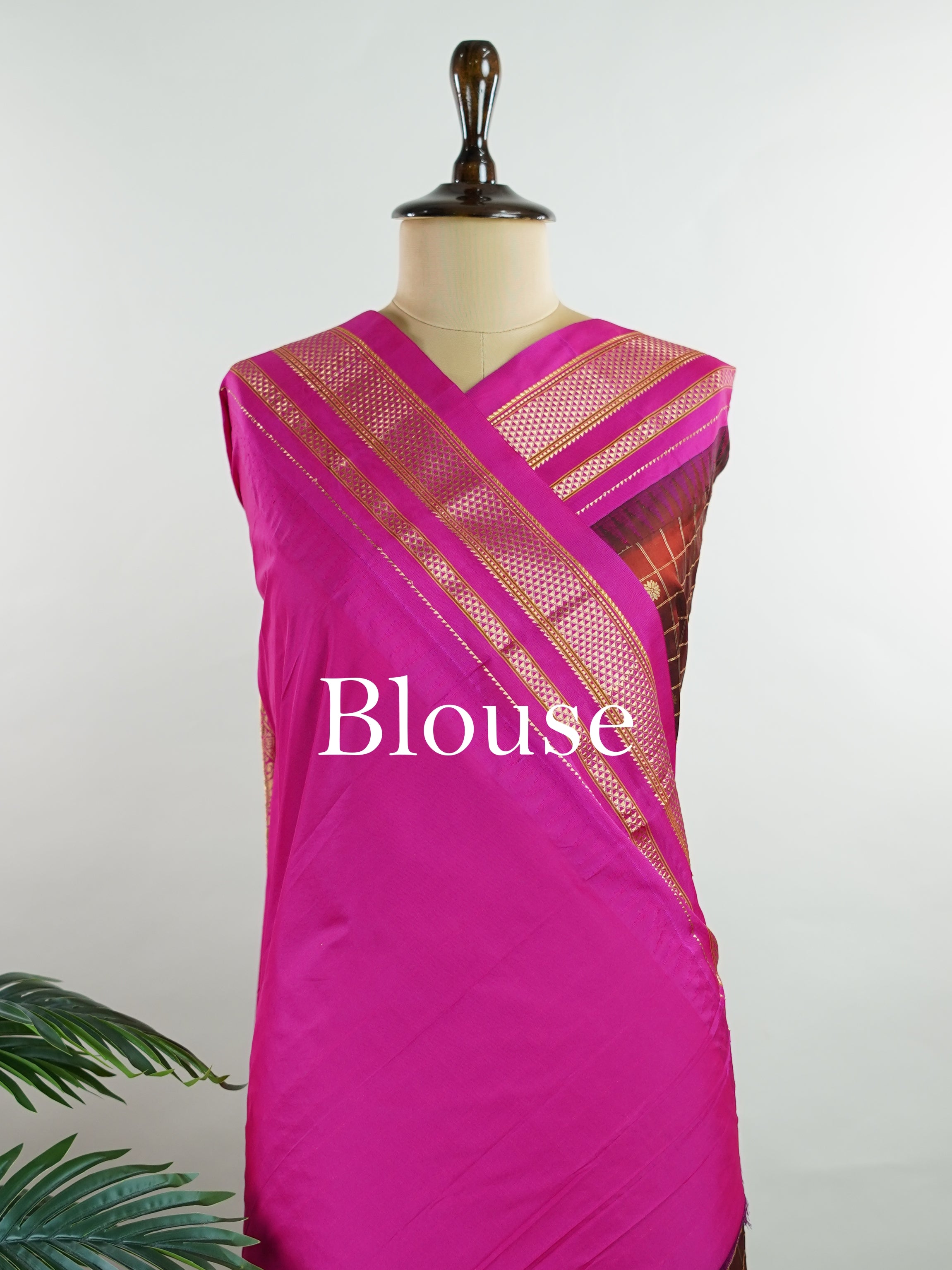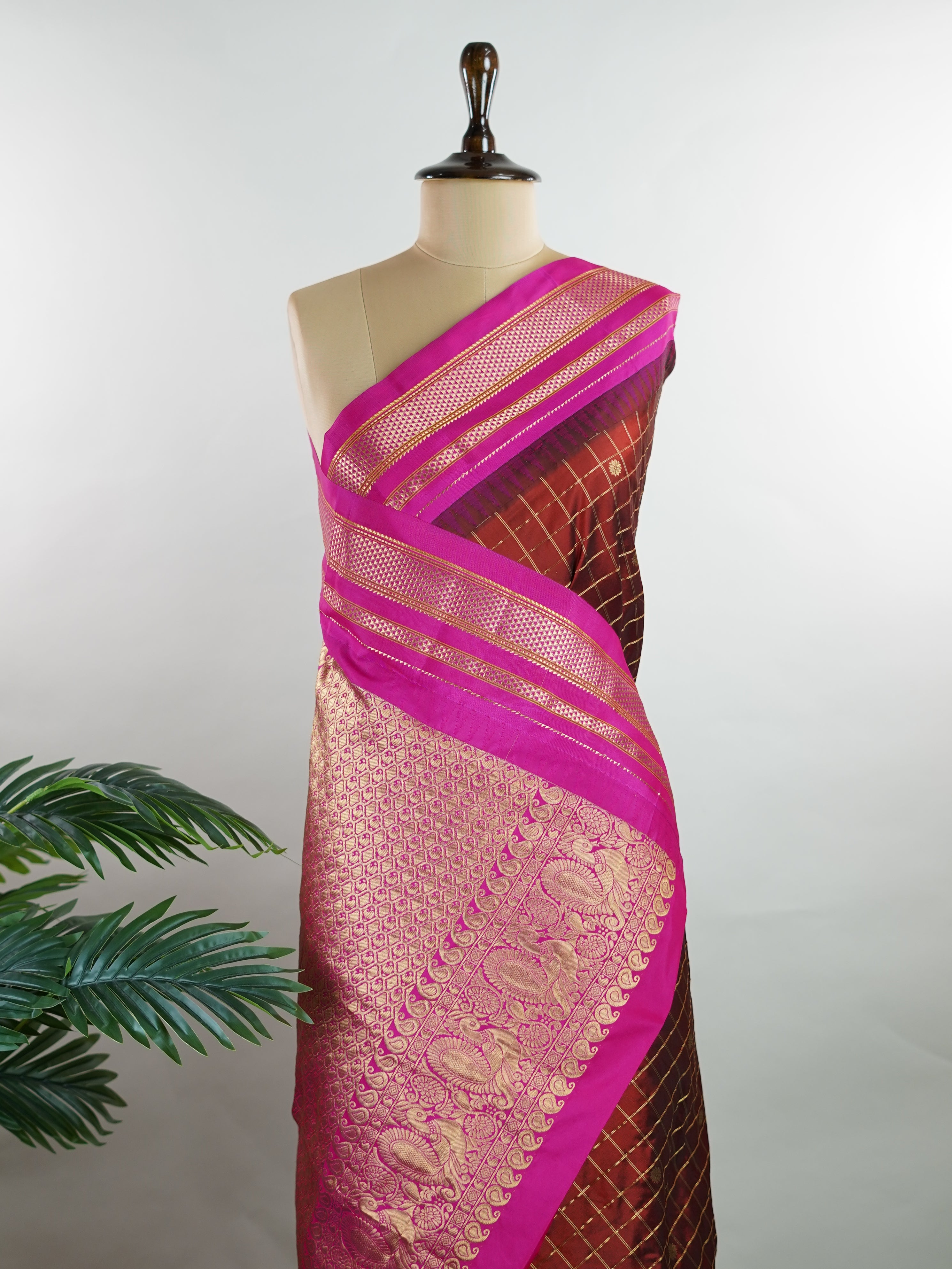 Narayanpet sarees with checks and buttis showcase a perfect blend of tradition and simplicity, featuring intricate motifs woven over classic check patterns.
