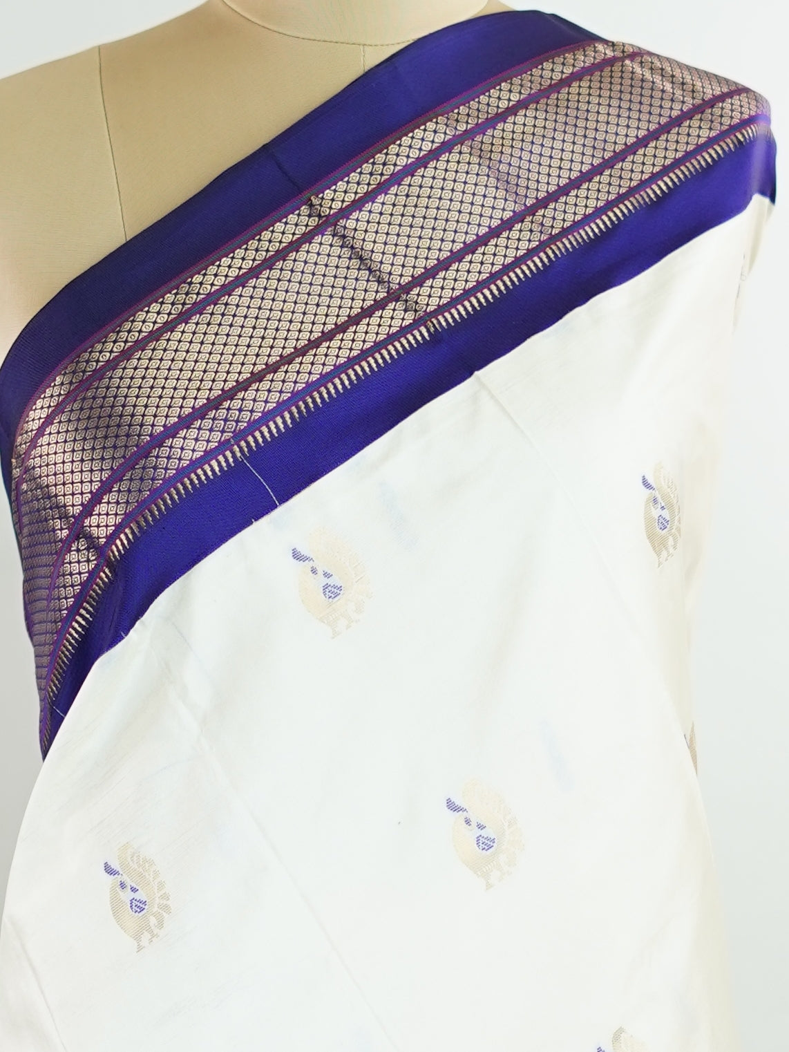 Our sarees are 100% Pure and they are all handwoven, unless mentioned otherwise in the saree description. So we request you to please read the saree specifications carefully. In a few of the sarees, there would be cross weaving between the body and the pallu, which is quite natural and is a sign of pure handlooms