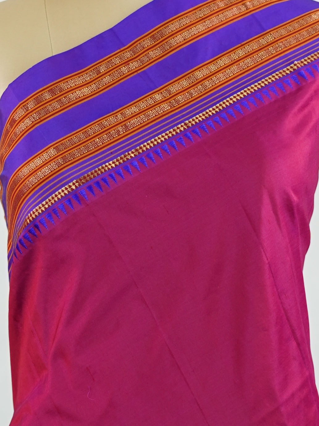 Narayanpet plain sarees are known for their elegant simplicity, featuring rich cotton or silk textures with contrasting borders.