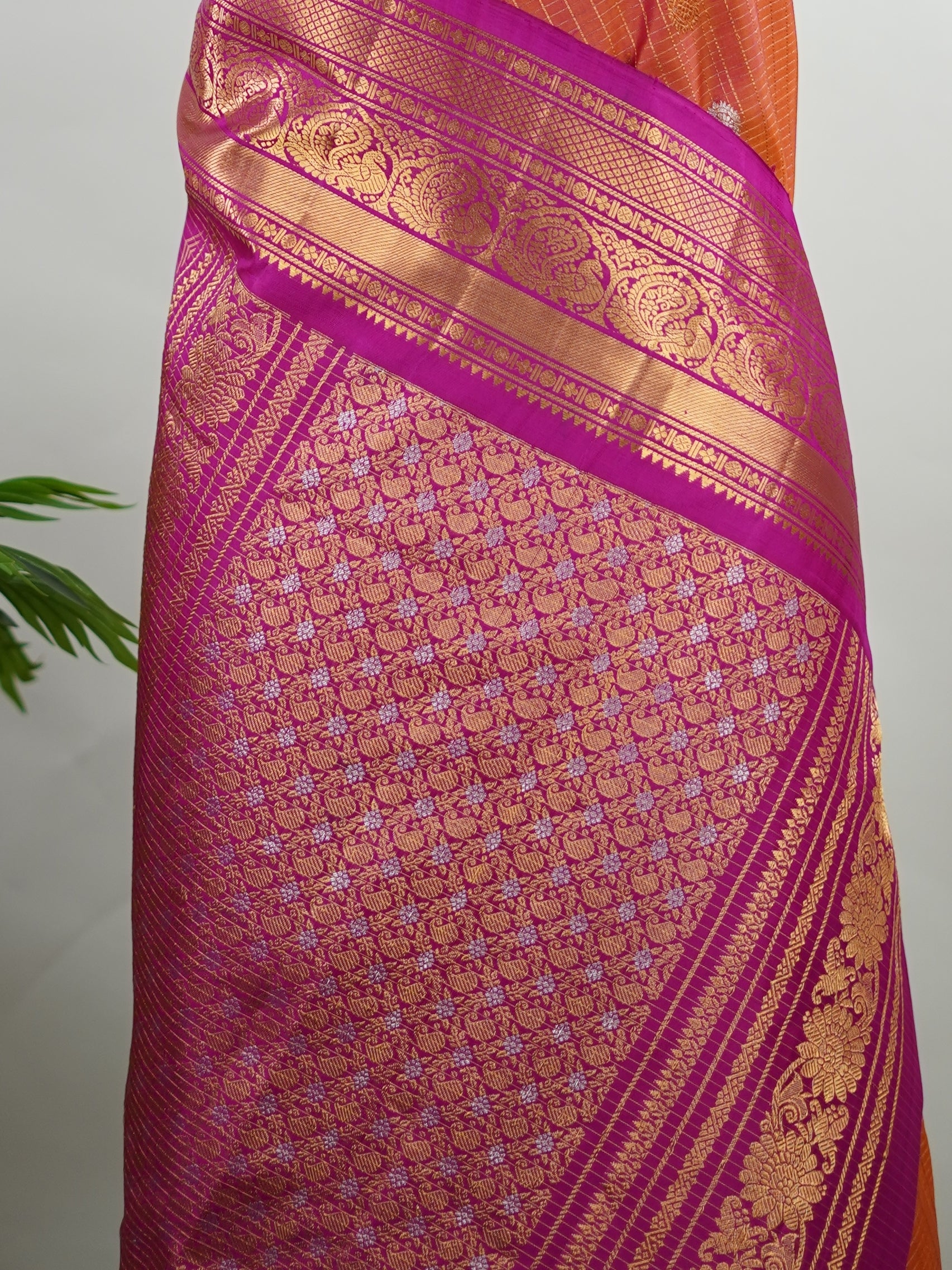 Our sarees are 100% Pure and they are all handwoven, unless mentioned otherwise in the saree description. So we request you to please read the saree specifications carefully. In a few of the sarees, there would be cross weaving between the body and the pallu, which is quite natural and is a sign of pure handlooms