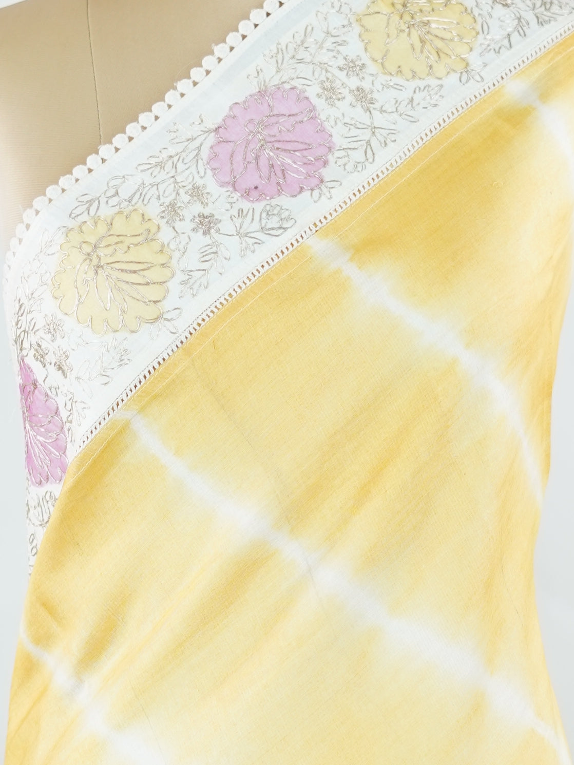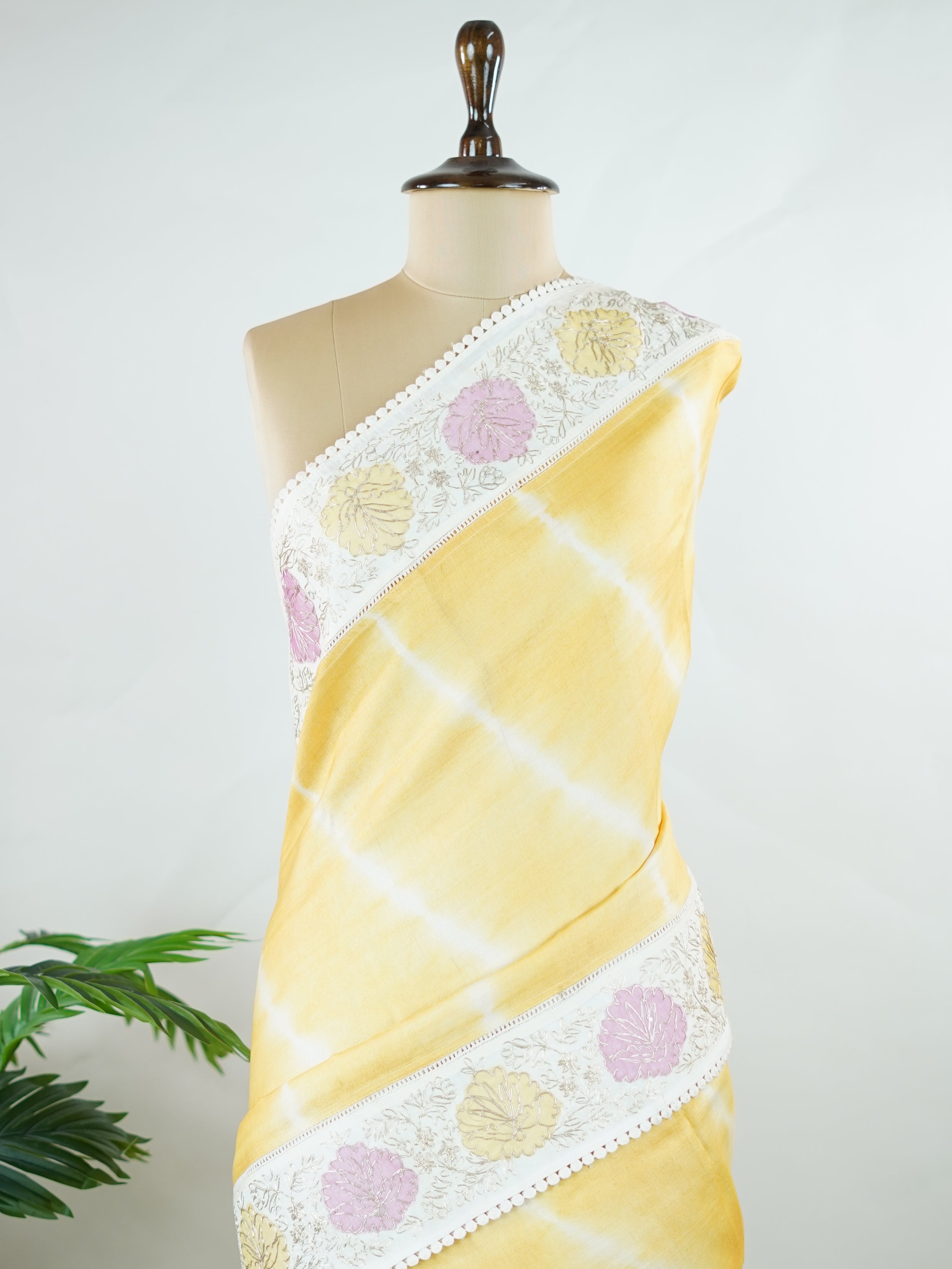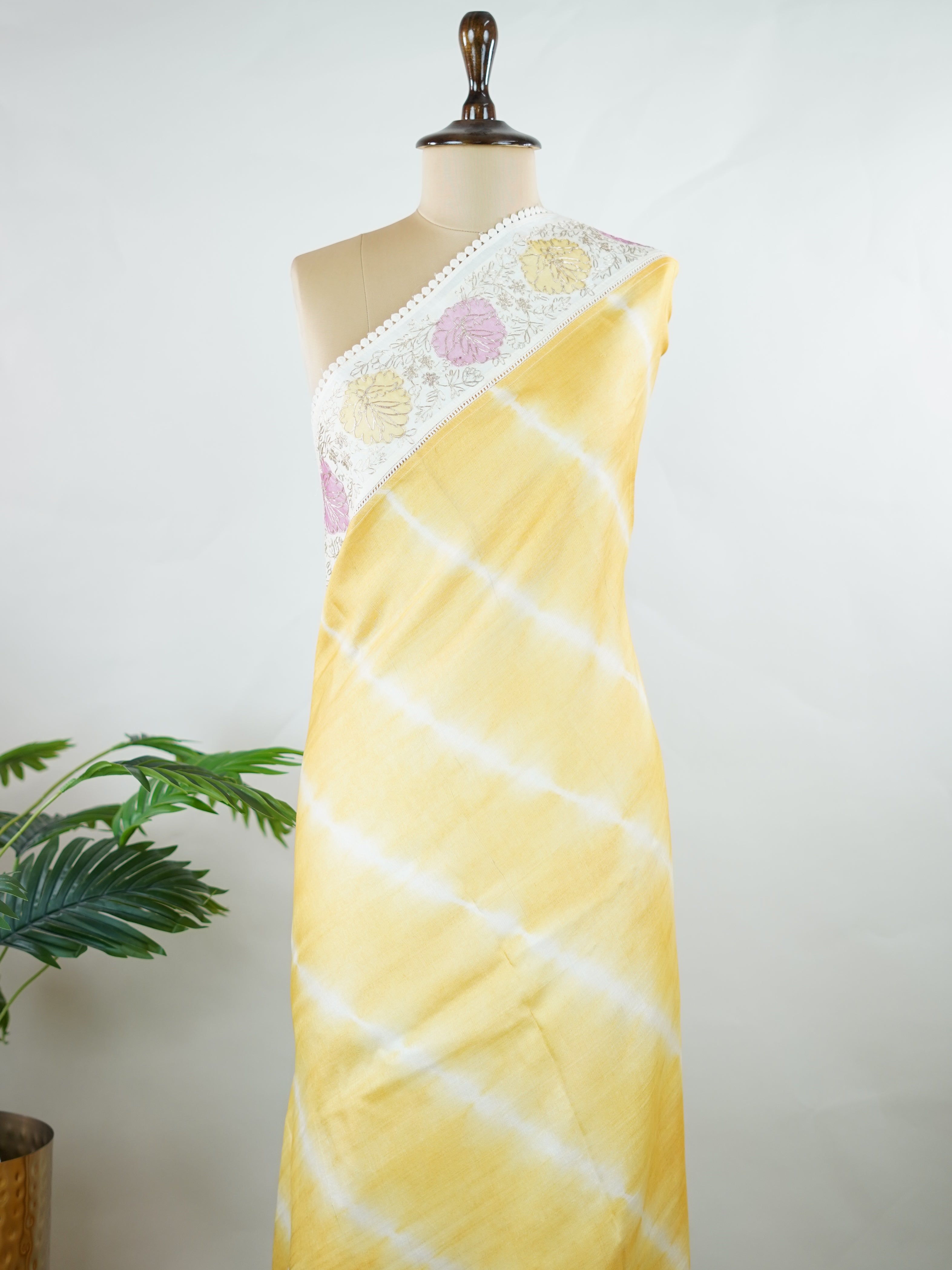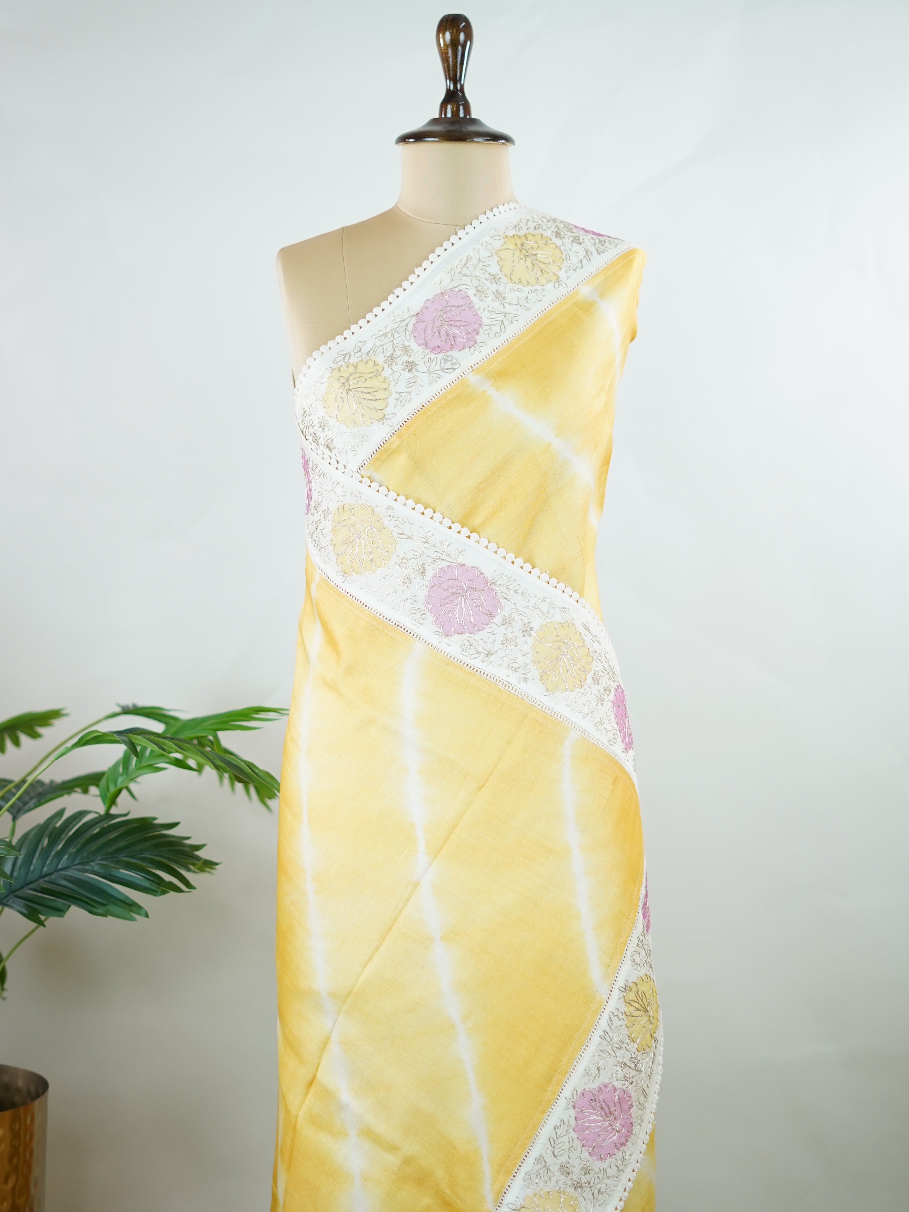 Lehariya Tusssar with Organza and Ari Pita work