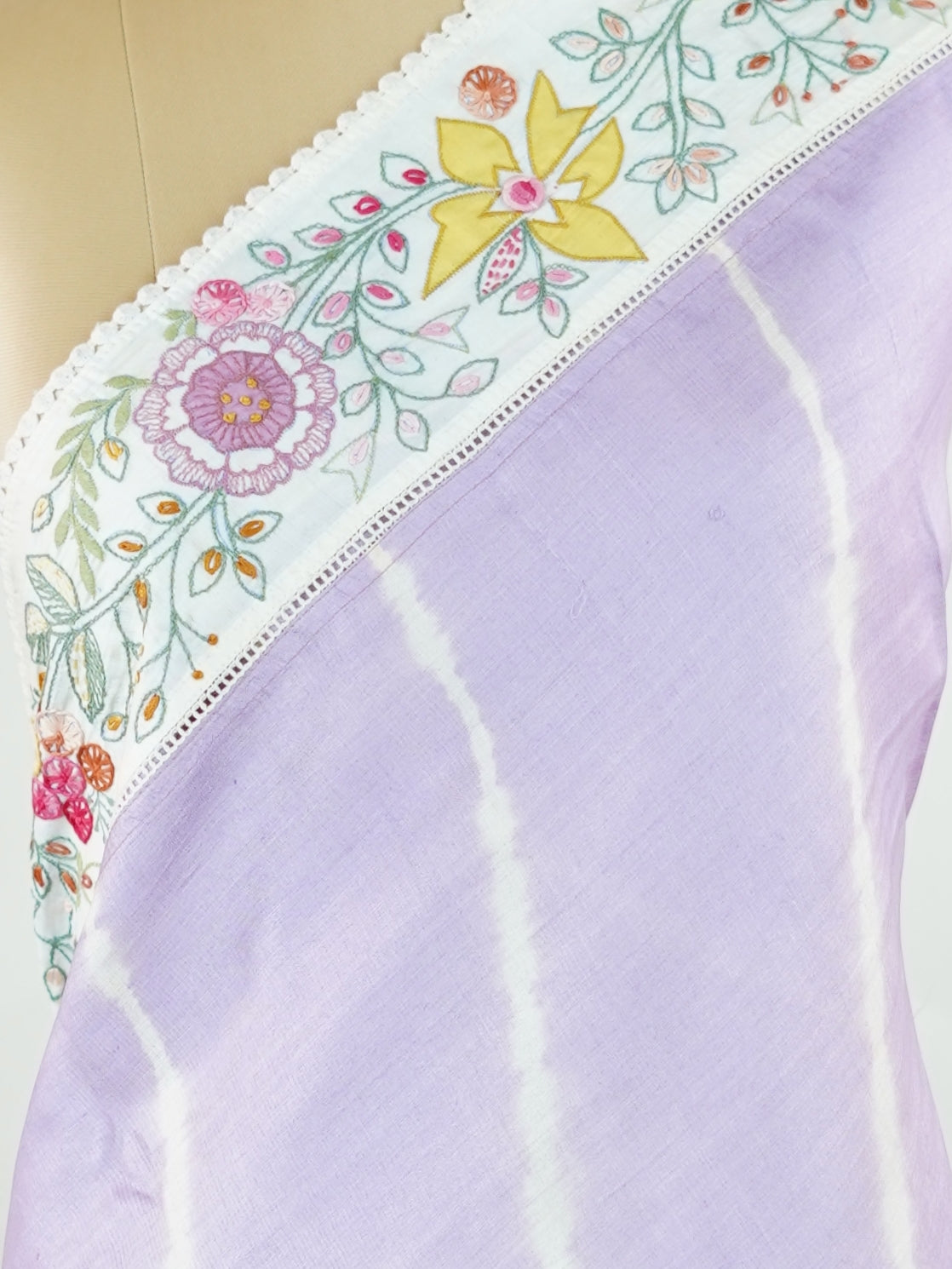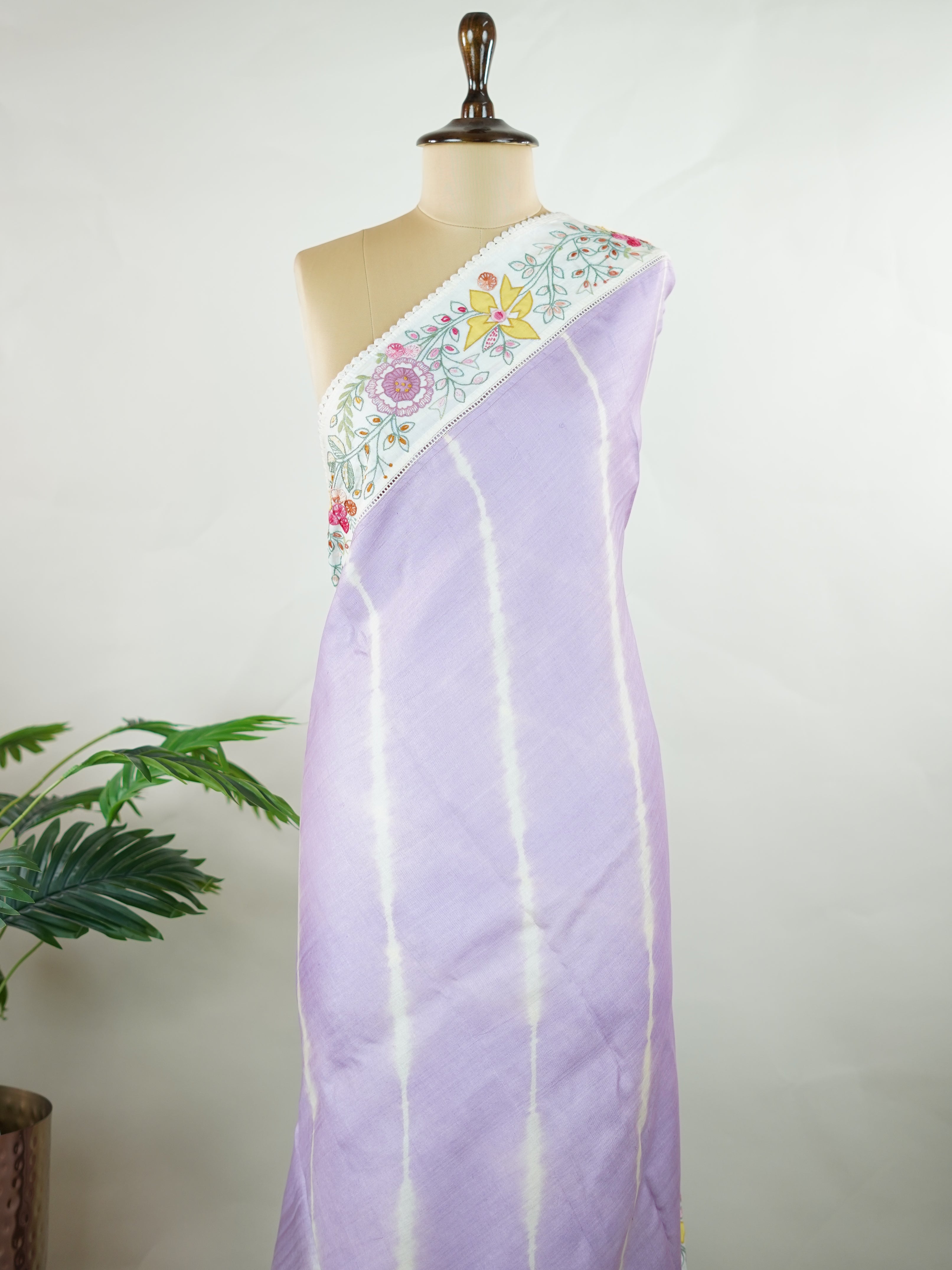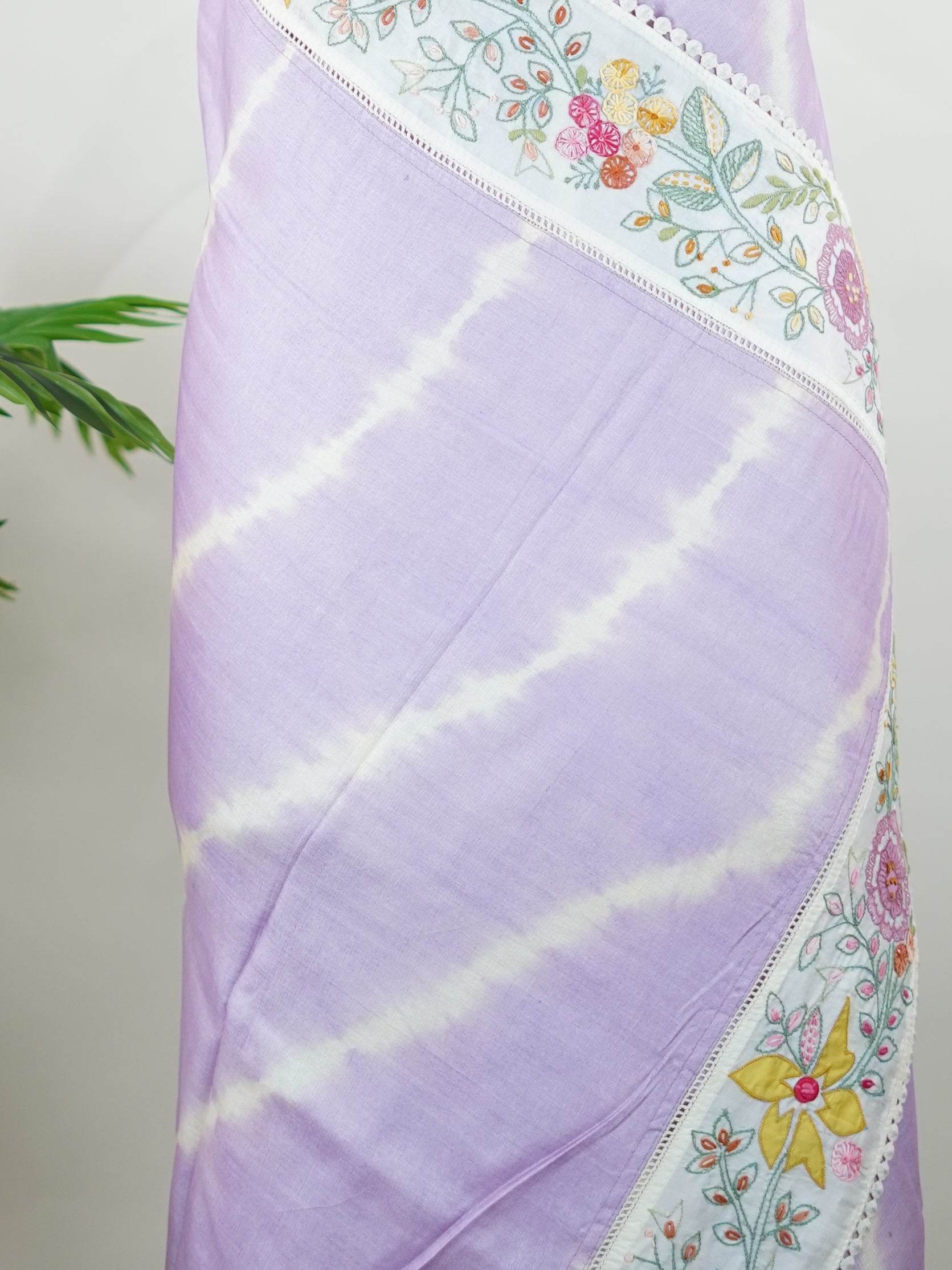Lehariya Tusssar with hand embroidery