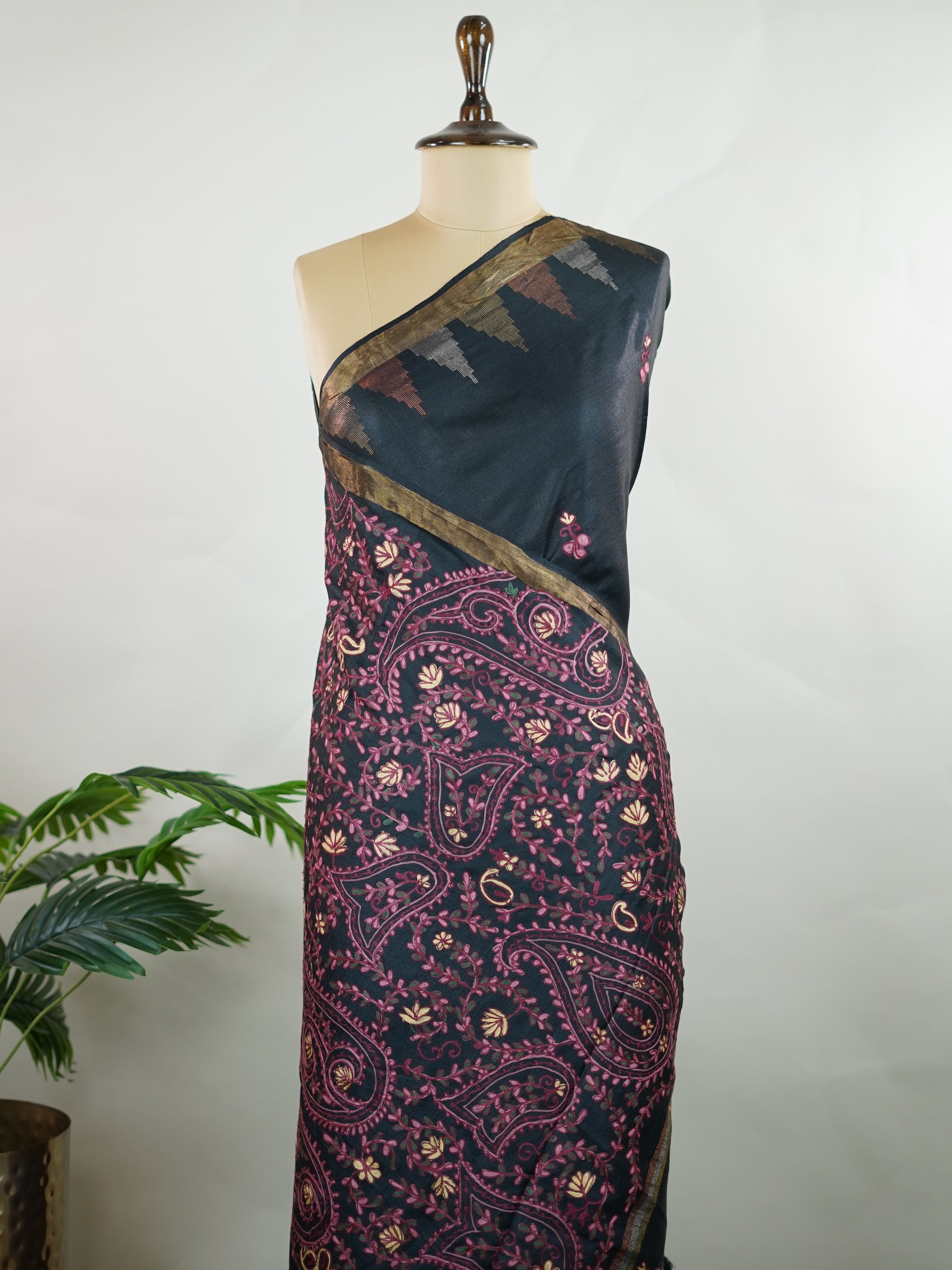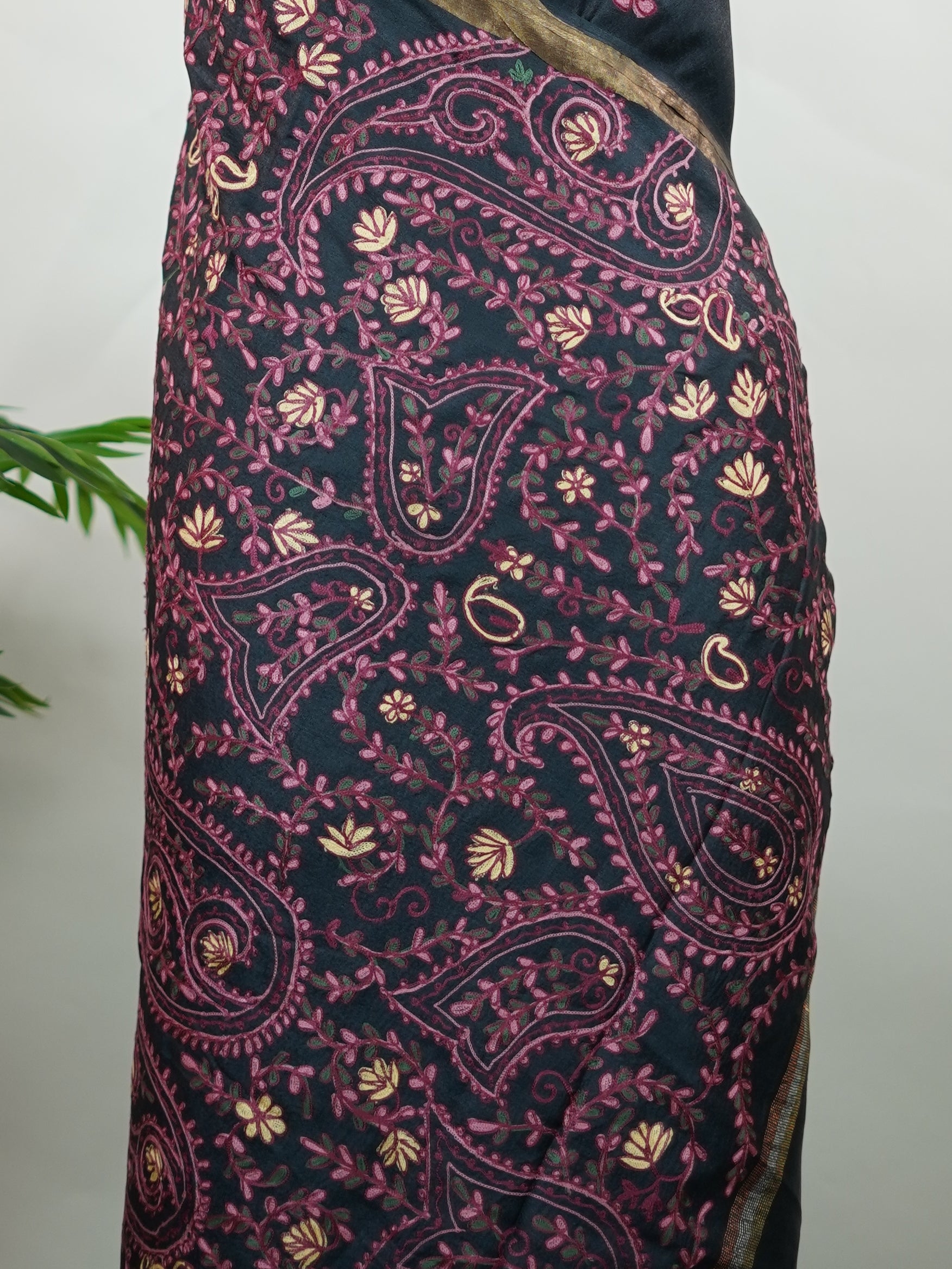 Tussar with Kashmiri Work