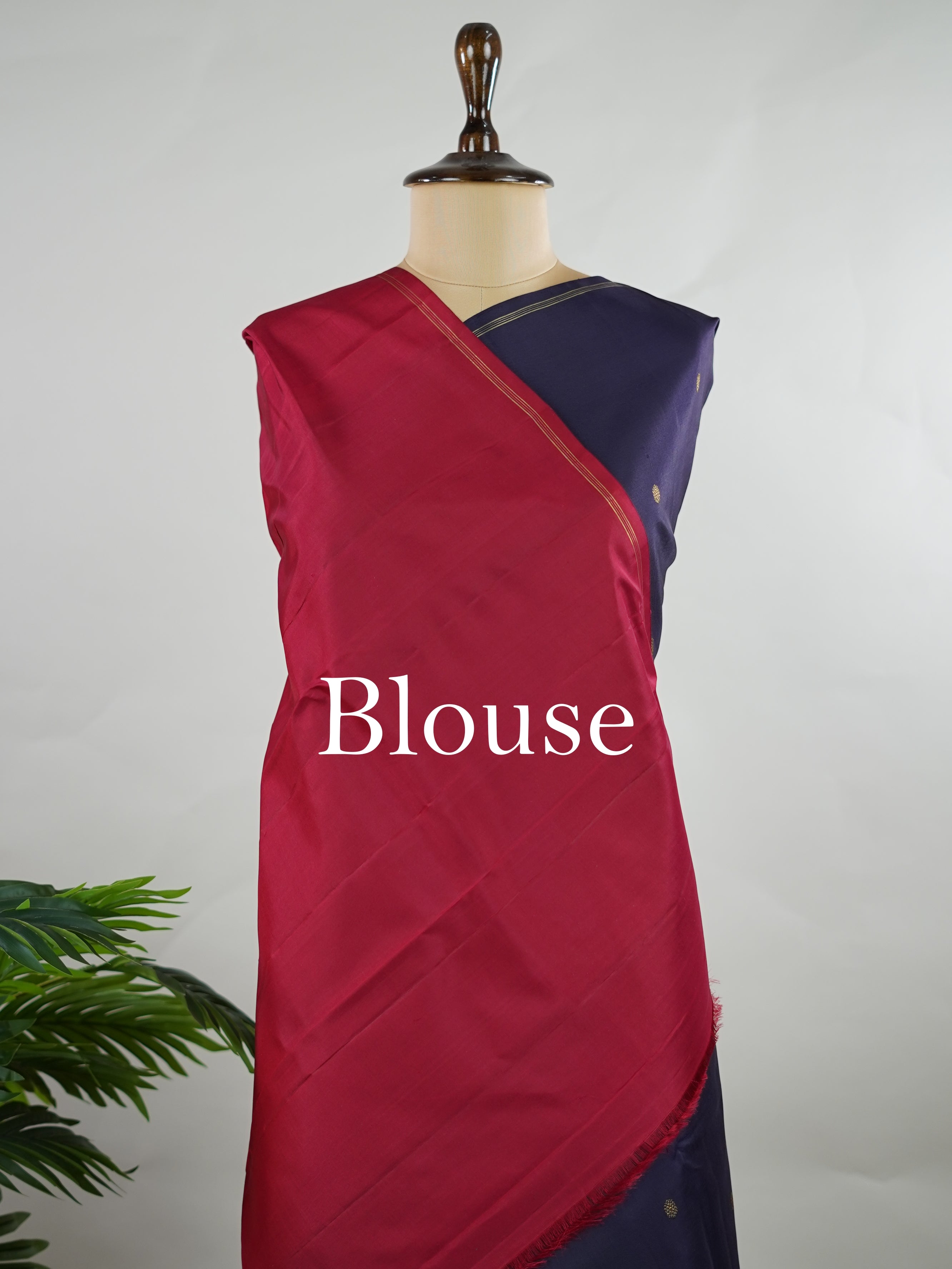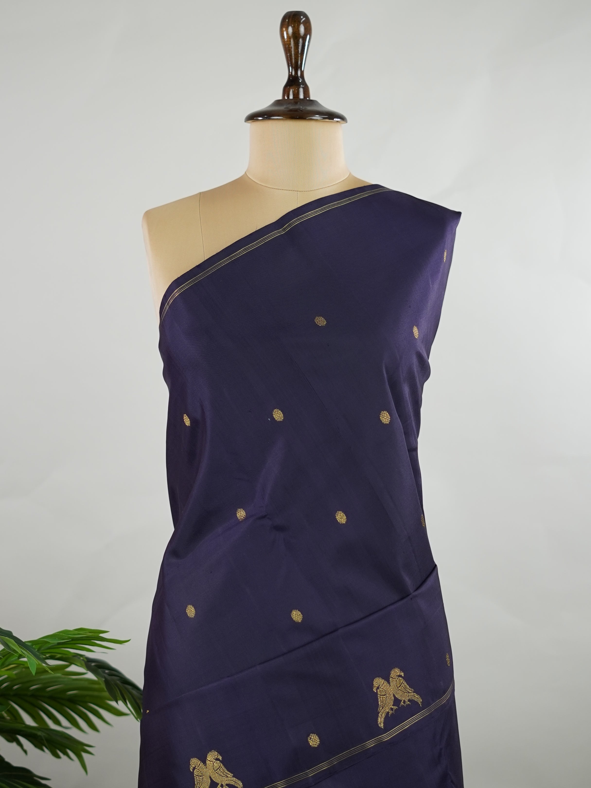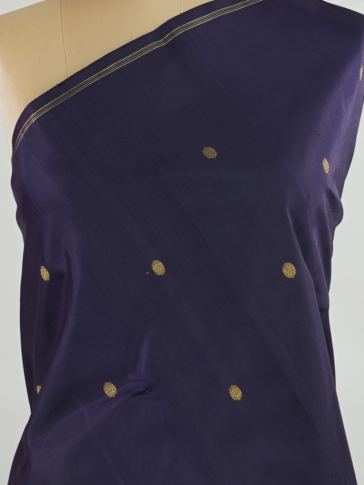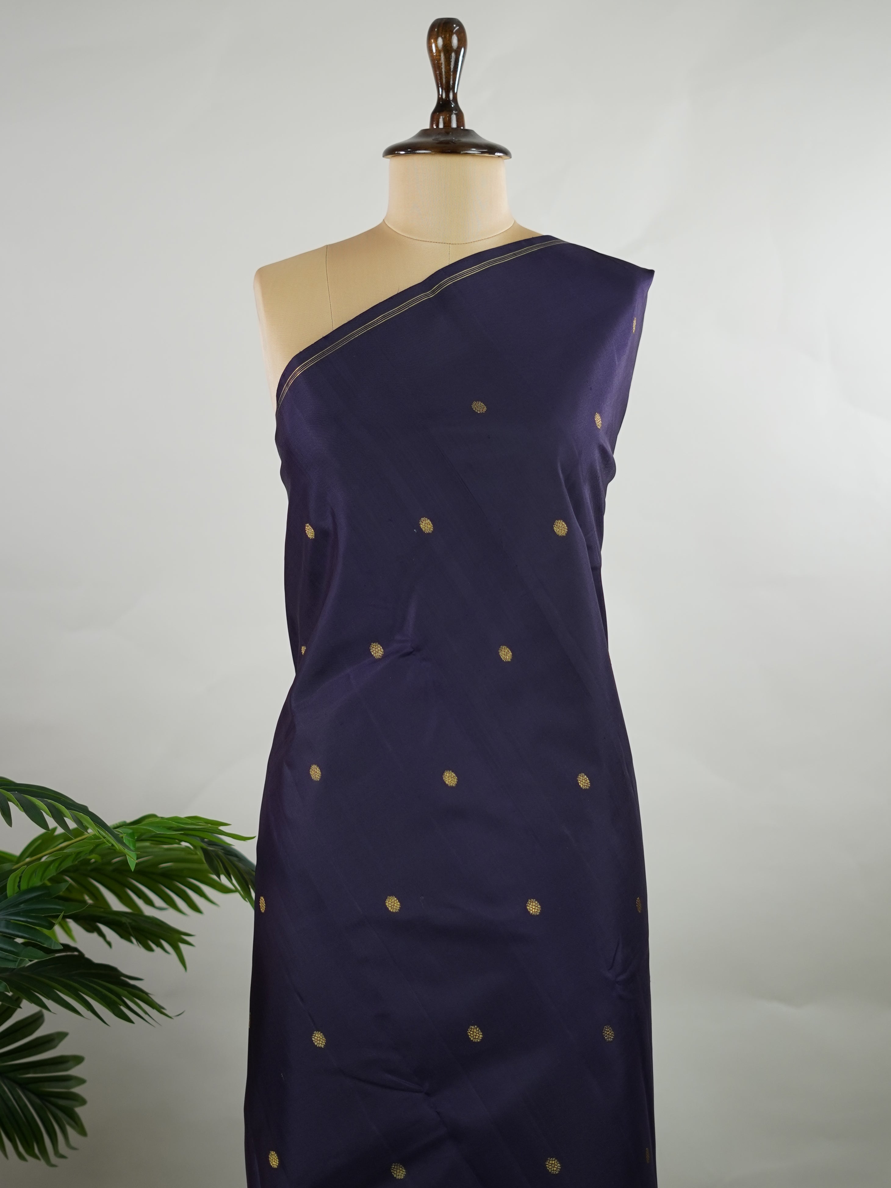 A vibrant blue handloom Kanjivaram with subtle buttas throughout.