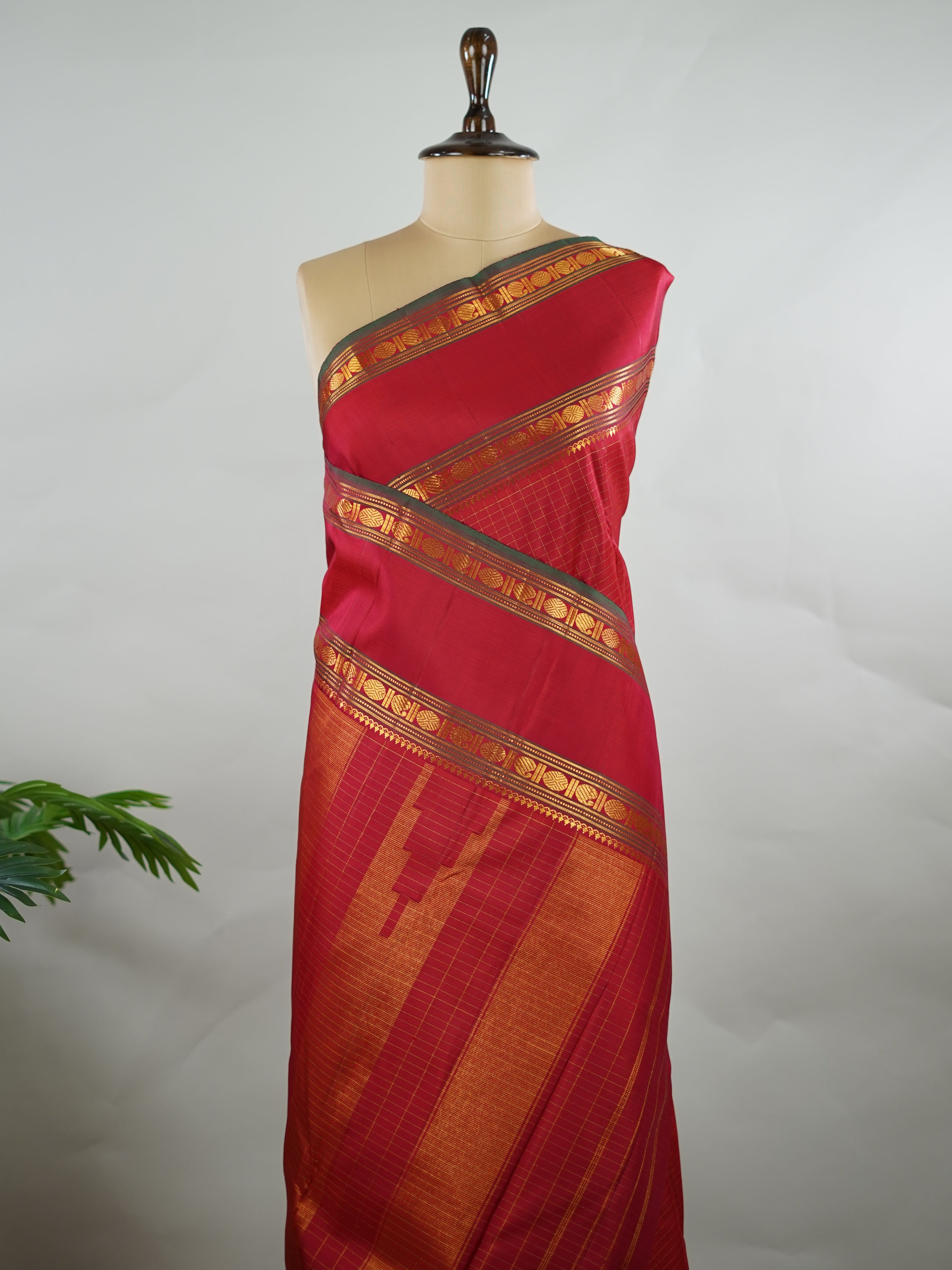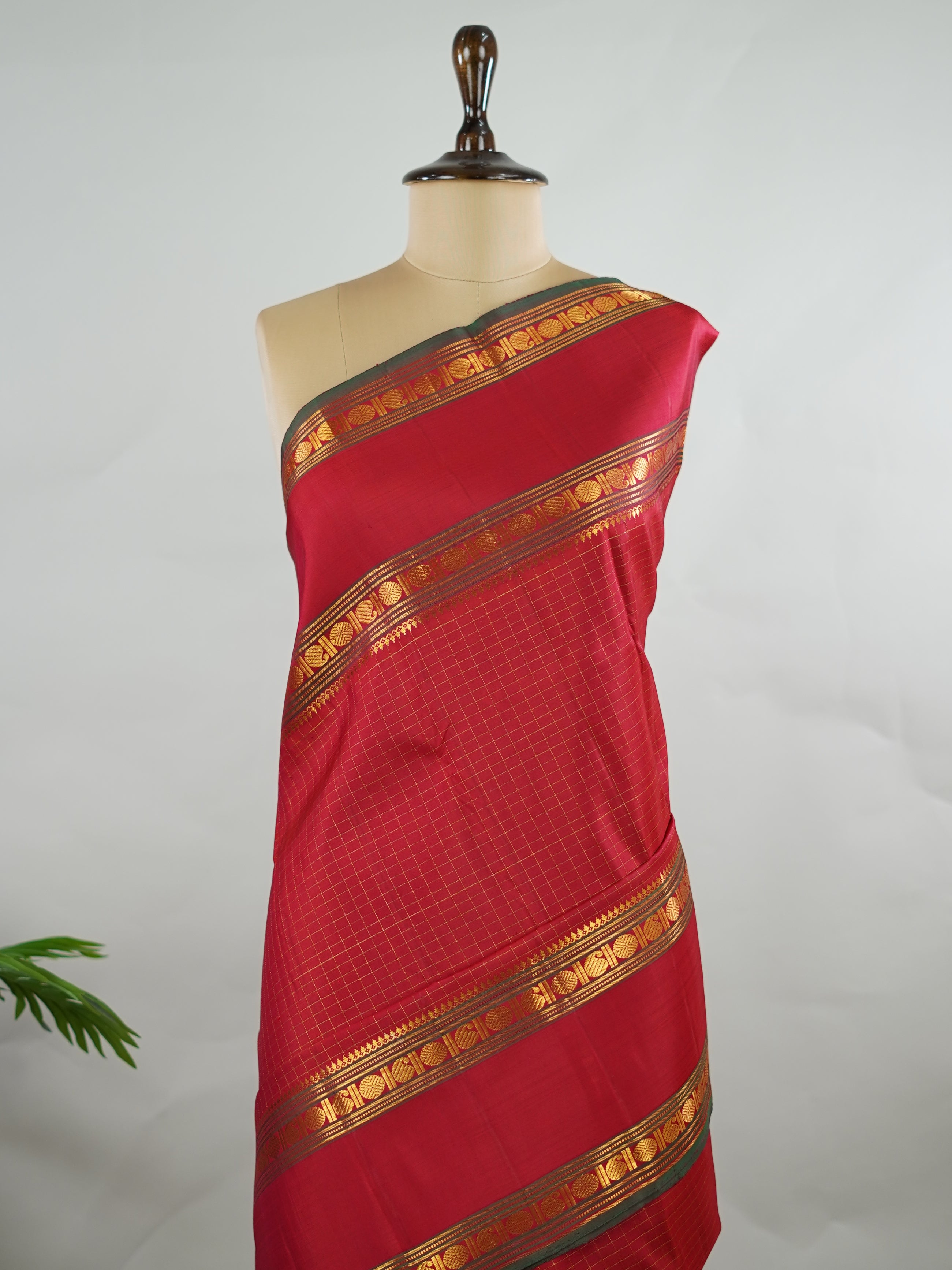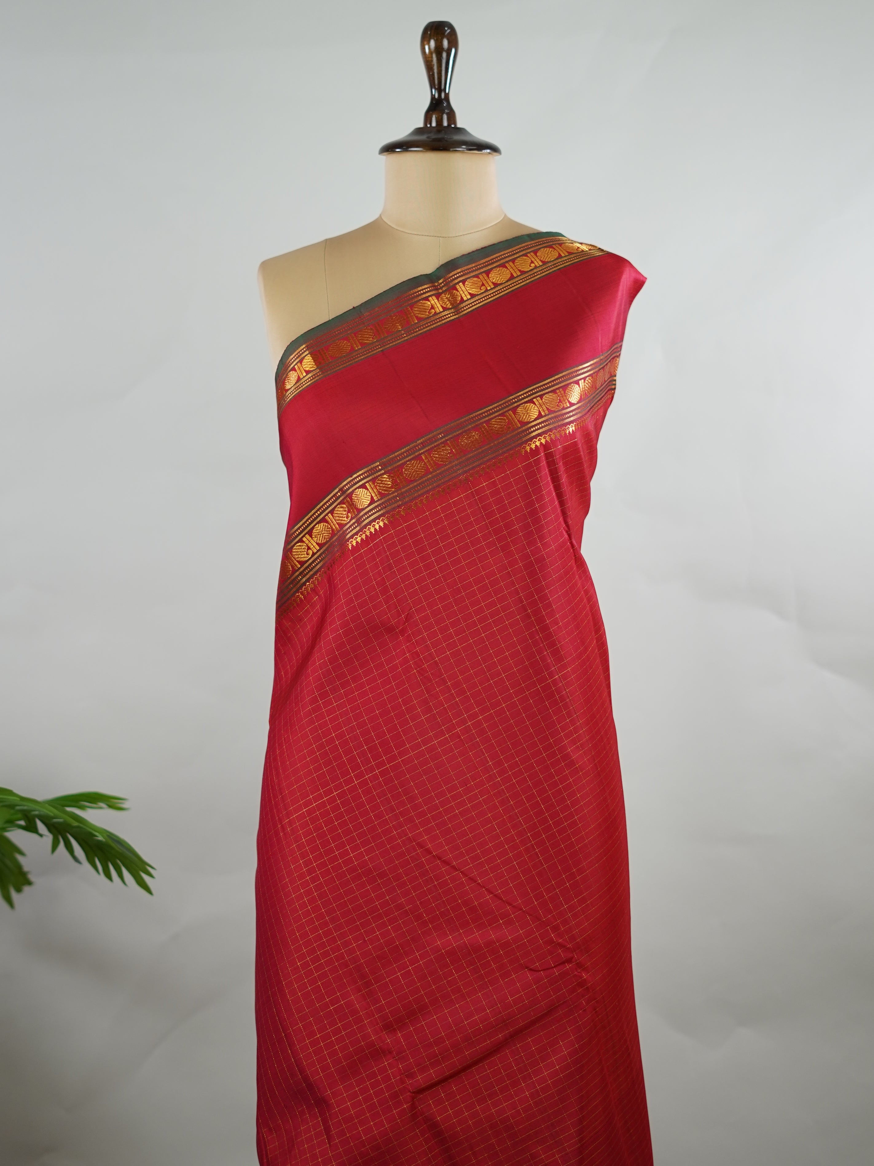 Pure silk woven in vibrant red checks.