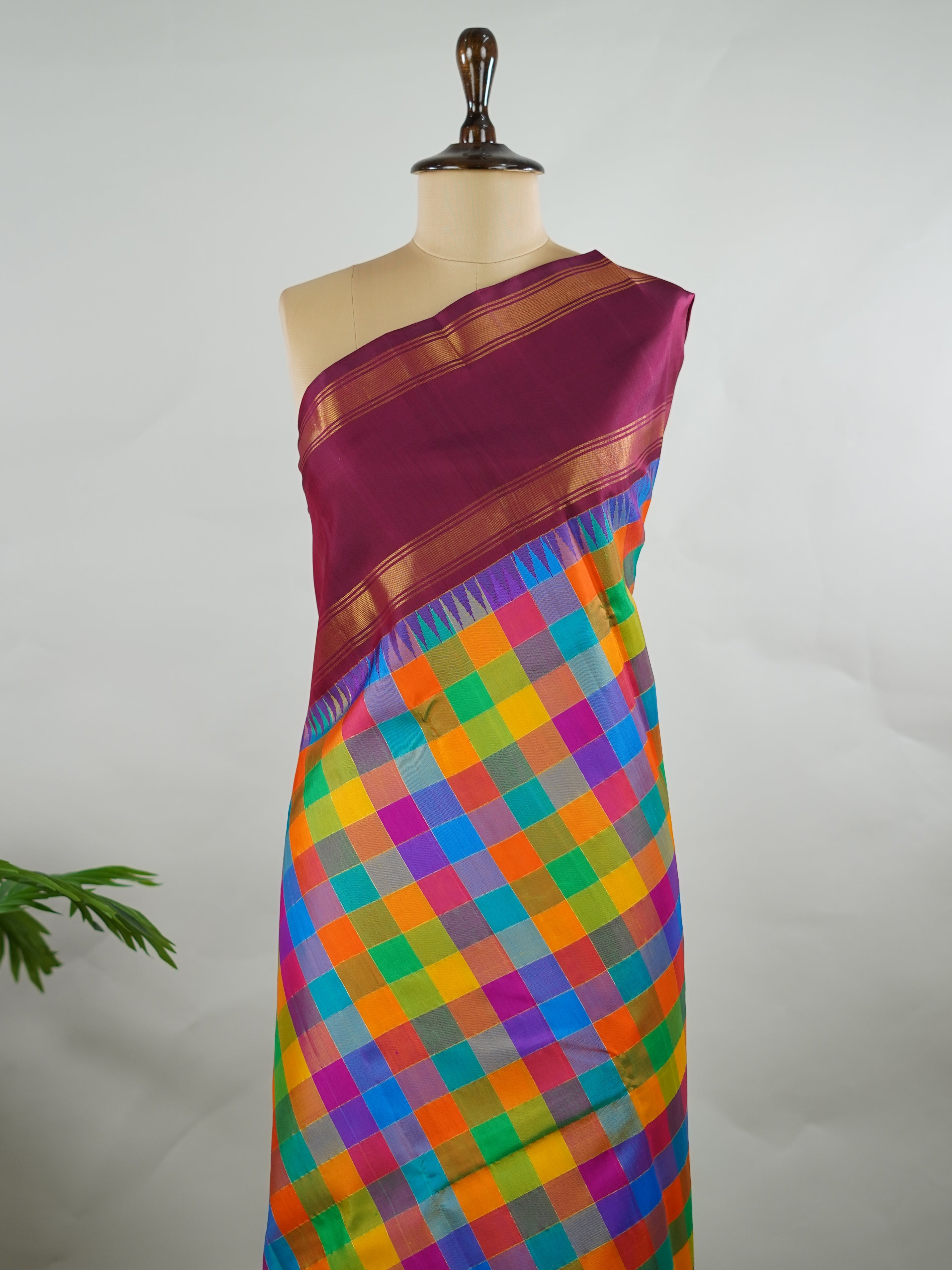 Pure silk woven with fine multi checks.