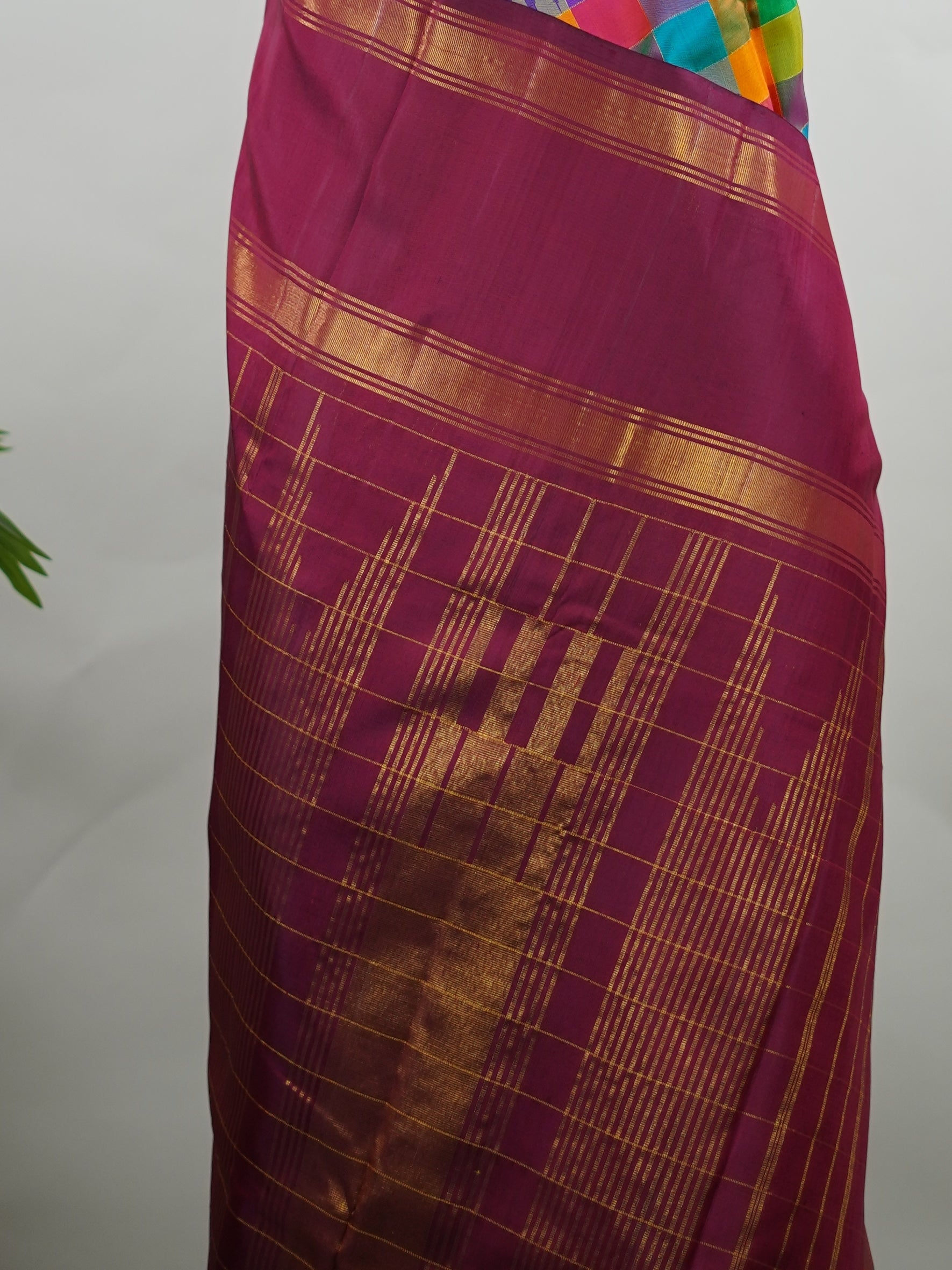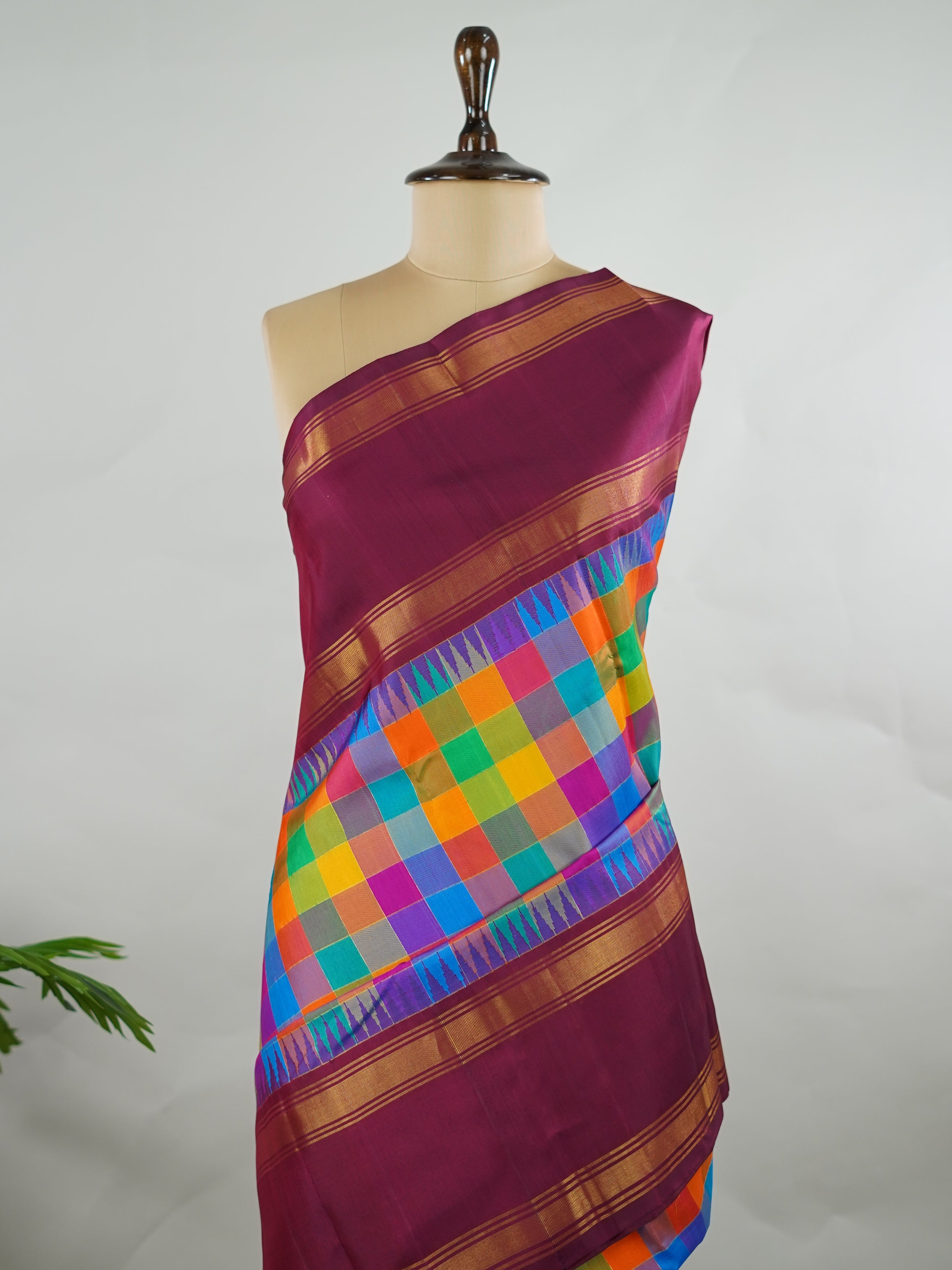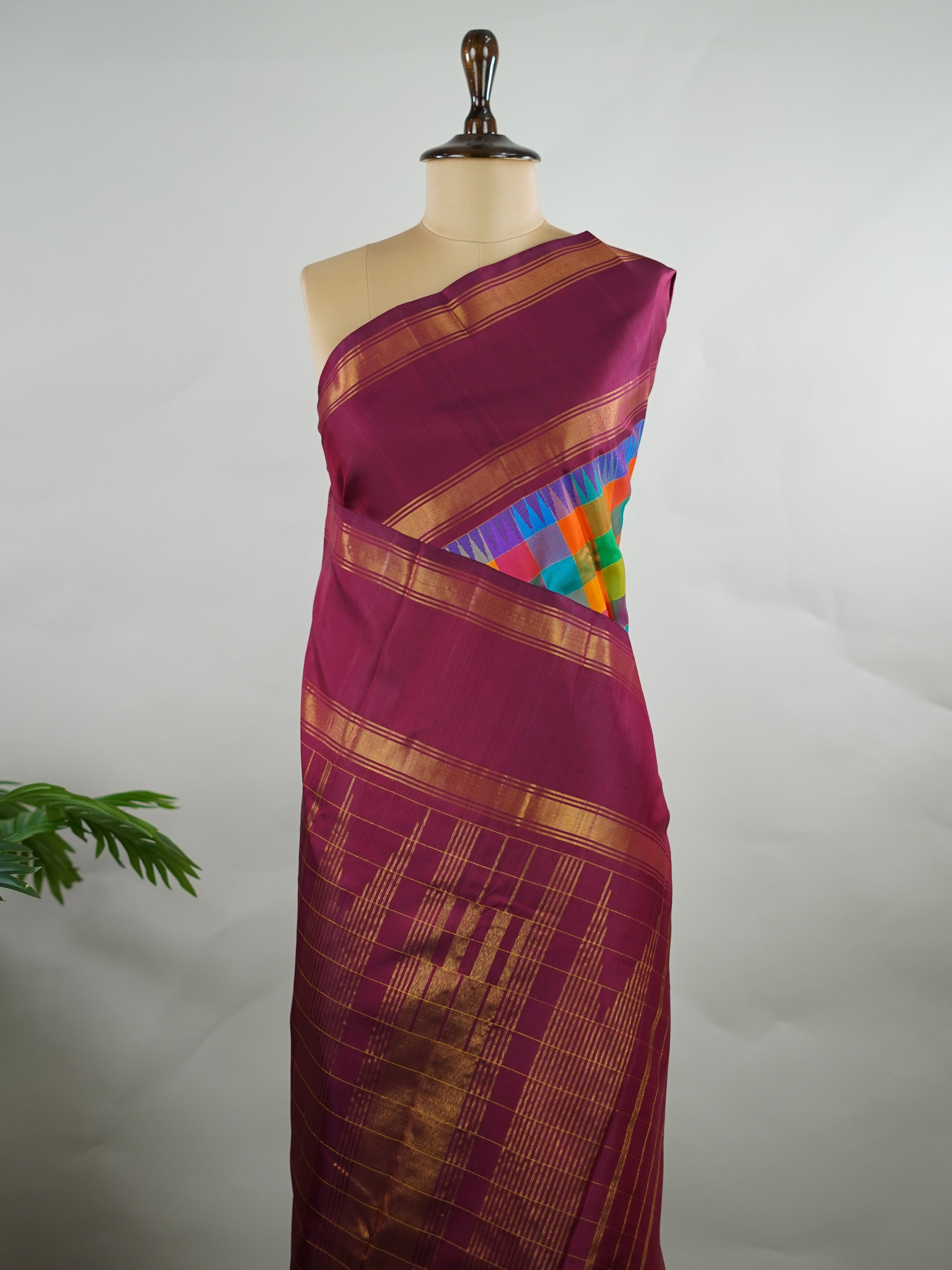 Paired with maroon gap borders and a matching blouse.