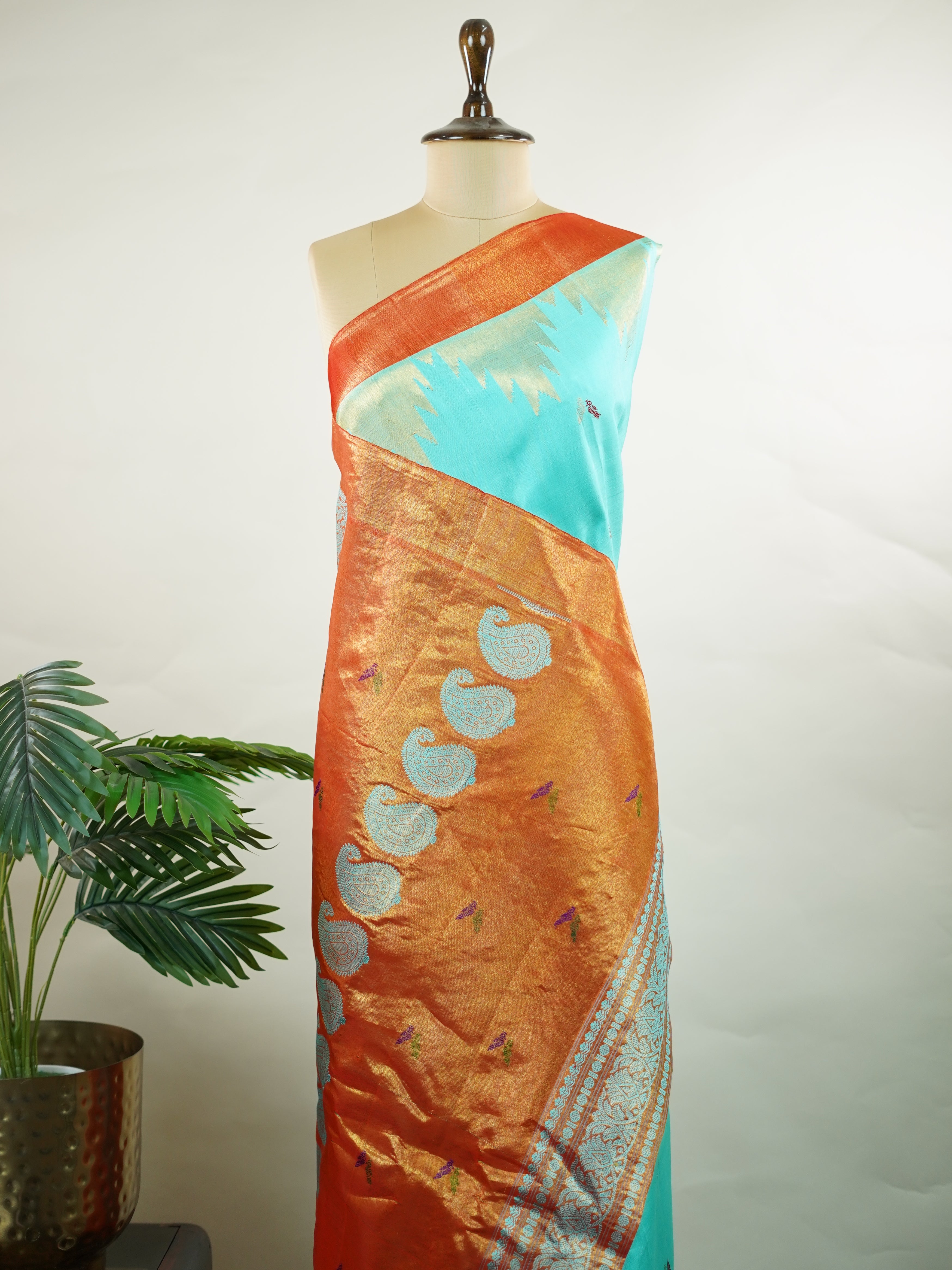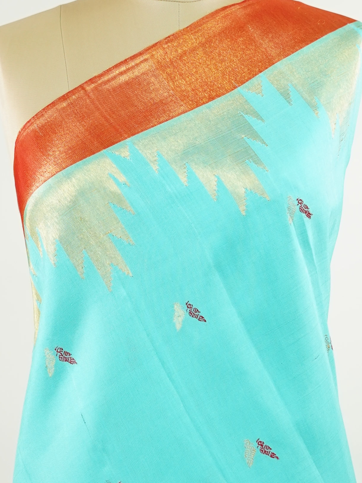 Our sarees are 100% Pure and they are all handwoven, unless mentioned otherwise in the saree description. So we request you to please read the saree specifications carefully. In a few of the sarees, there would be cross weaving between the body and the pallu, which is quite natural and is a sign of pure handlooms
