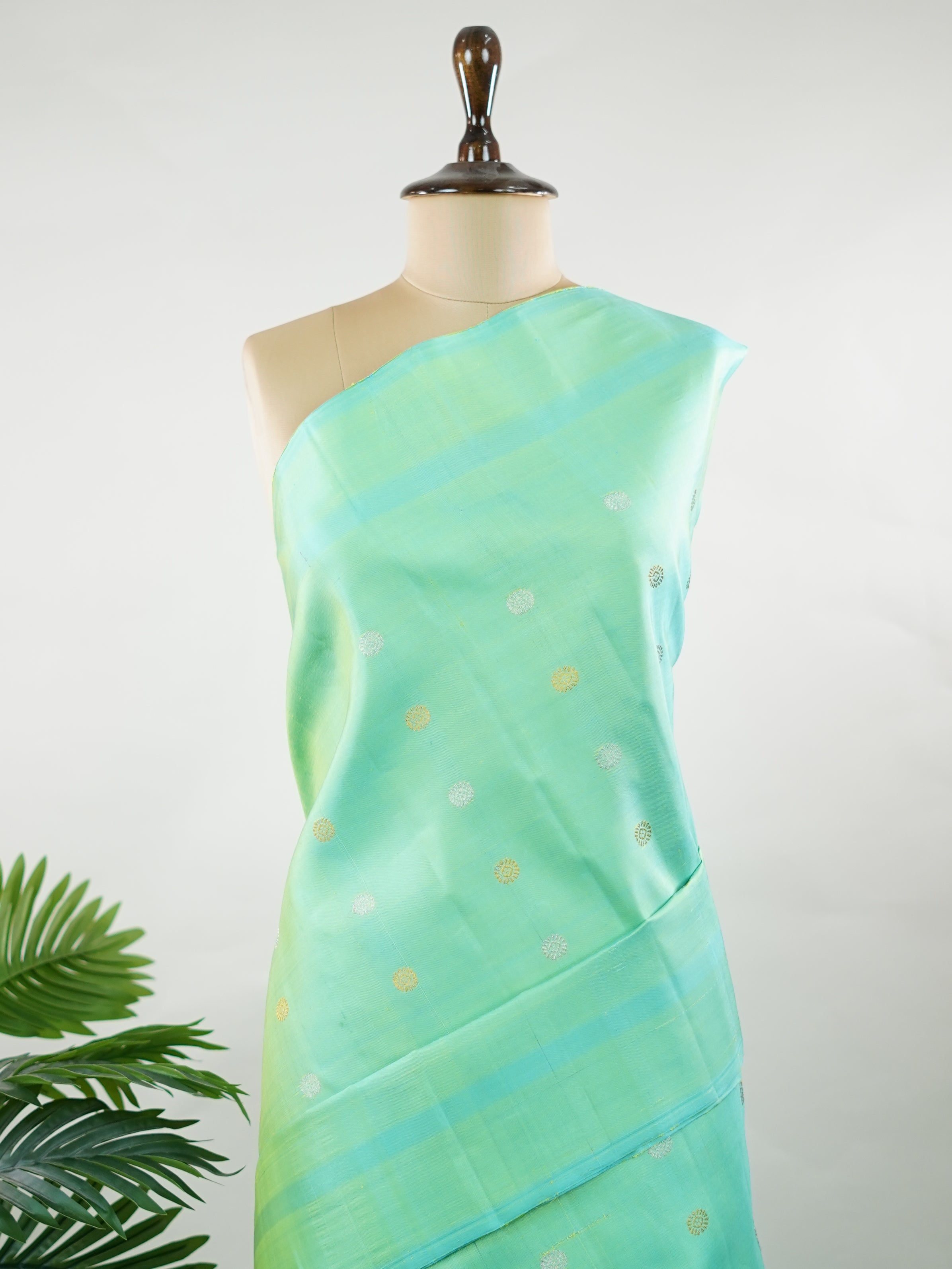 Our sarees are 100% Pure and they are all handwoven, unless mentioned otherwise in the saree description. So we request you to please read the saree specifications carefully. In a few of the sarees, there would be cross weaving between the body and the pallu, which is quite natural and is a sign of pure handlooms