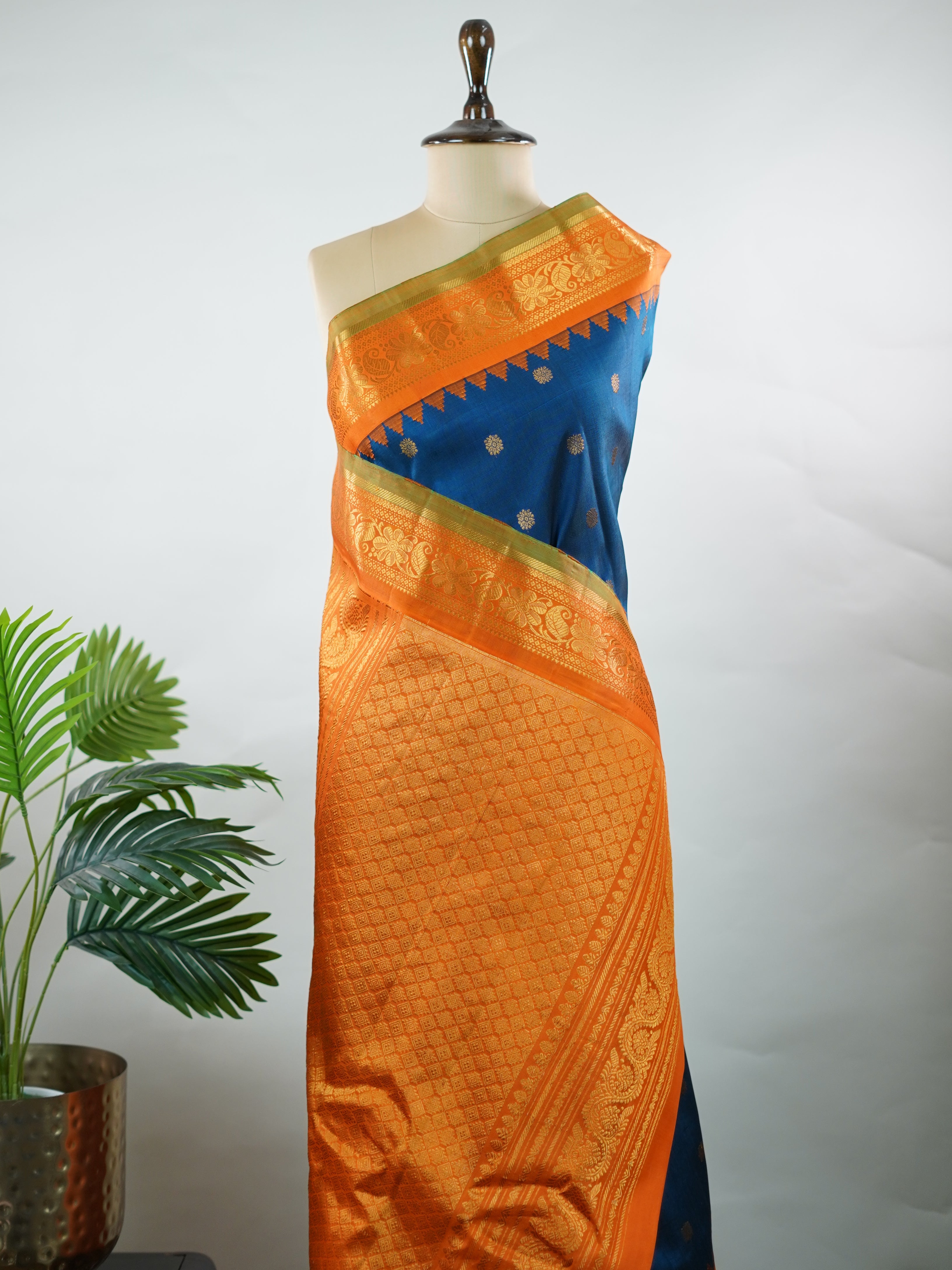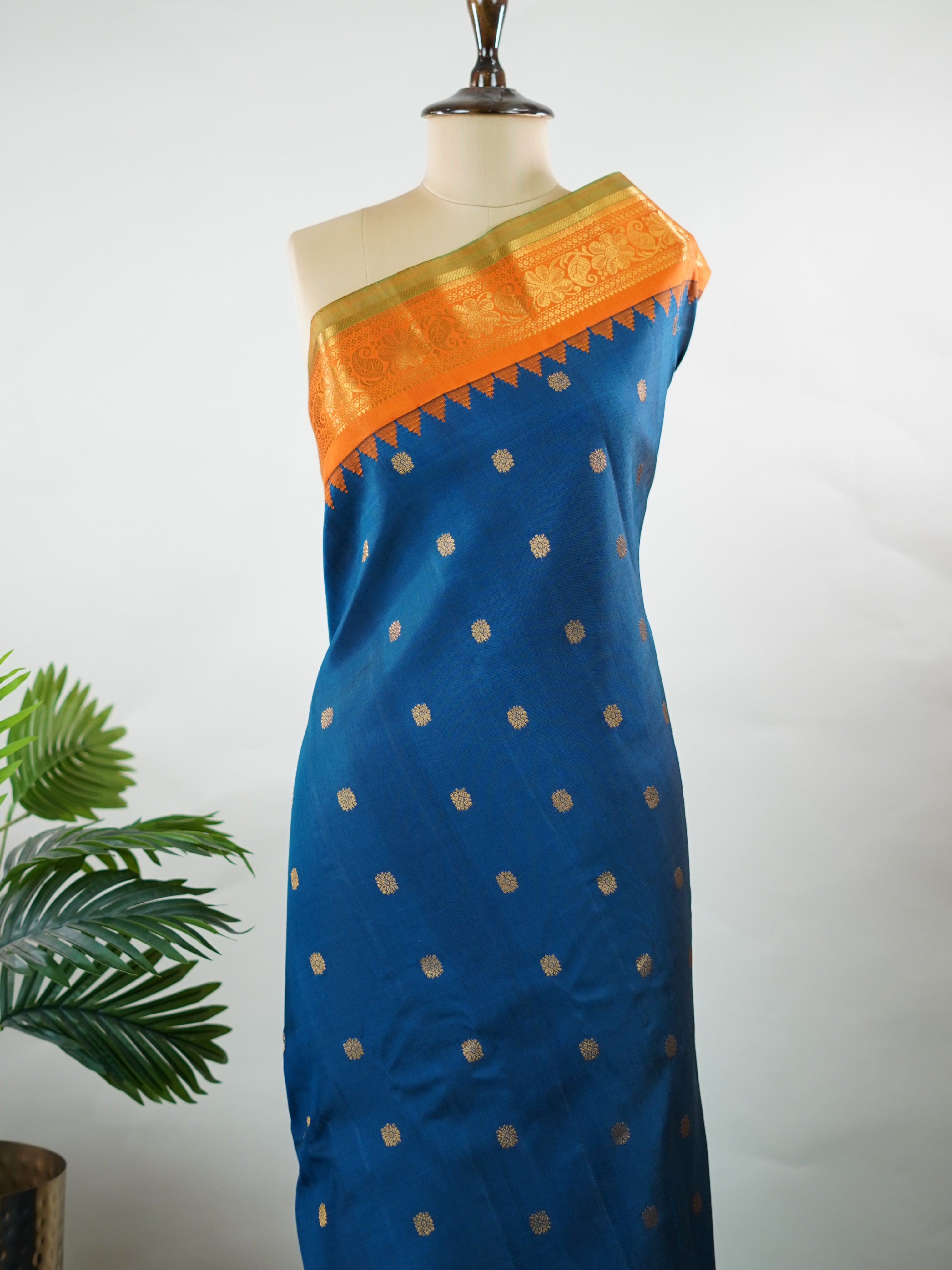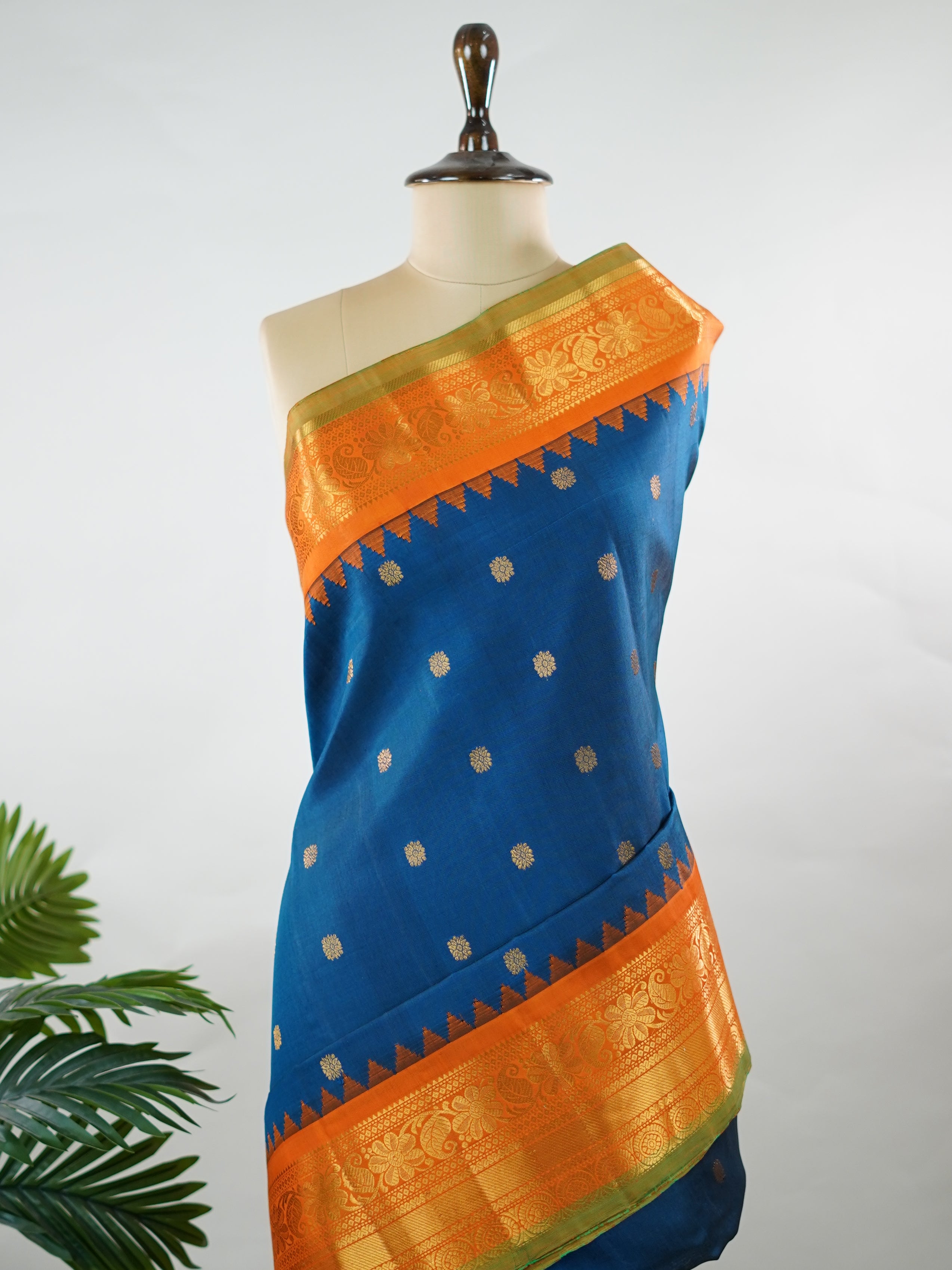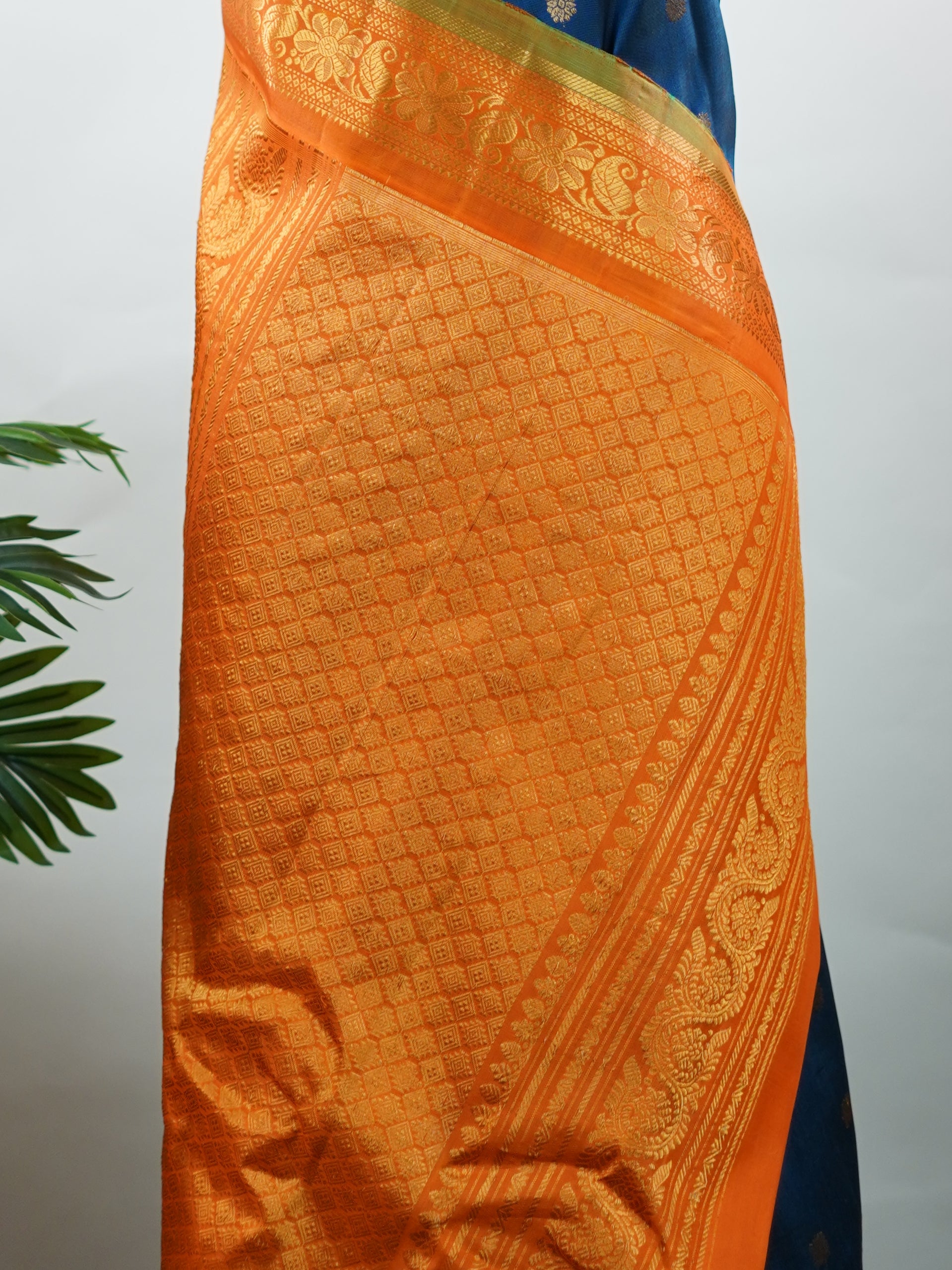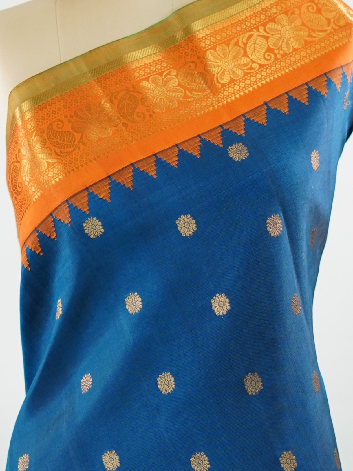 Our sarees are 100% Pure and they are all handwoven, unless mentioned otherwise in the saree description. So we request you to please read the saree specifications carefully. In a few of the sarees, there would be cross weaving between the body and the pallu, which is quite natural and is a sign of pure handlooms