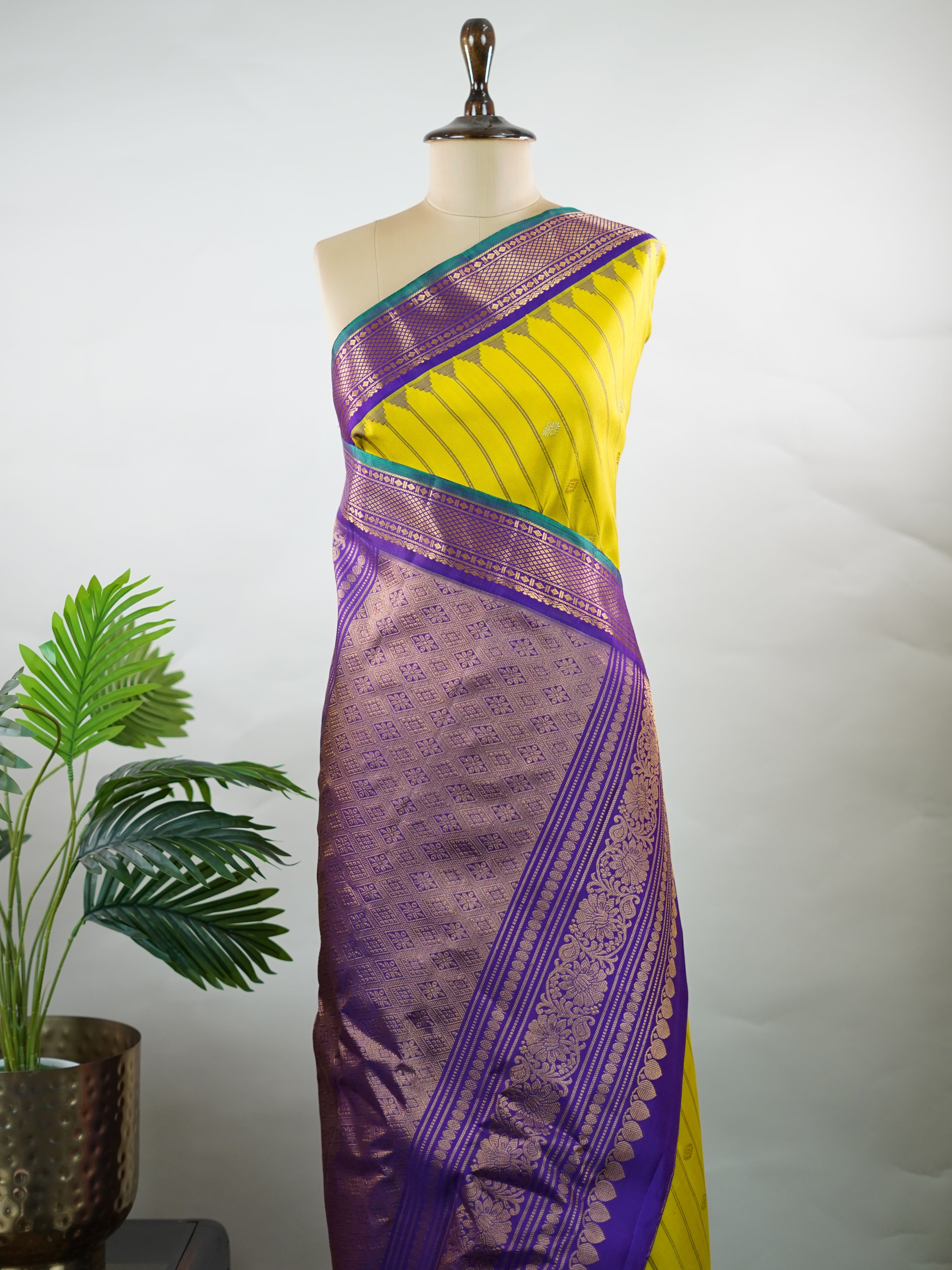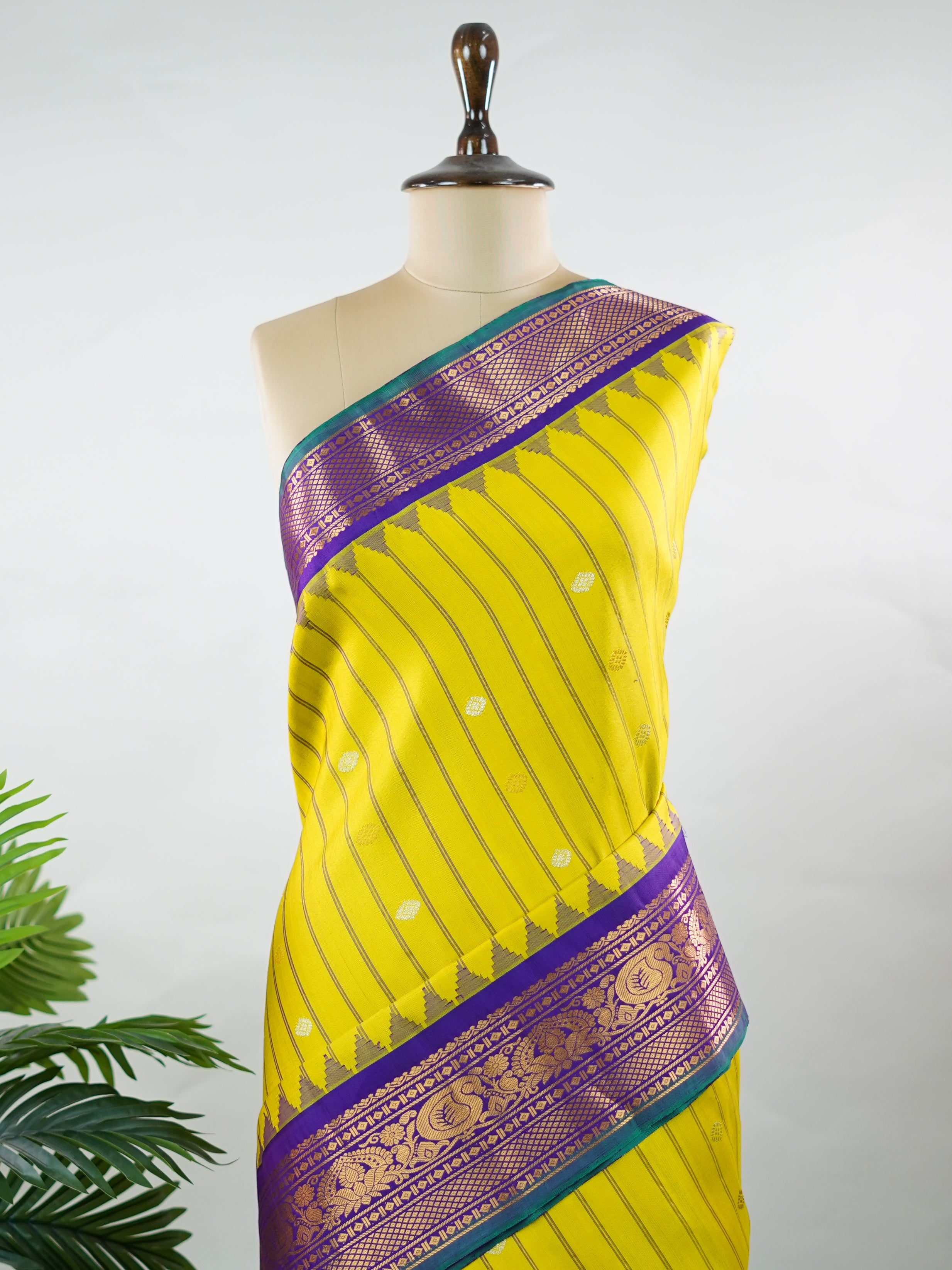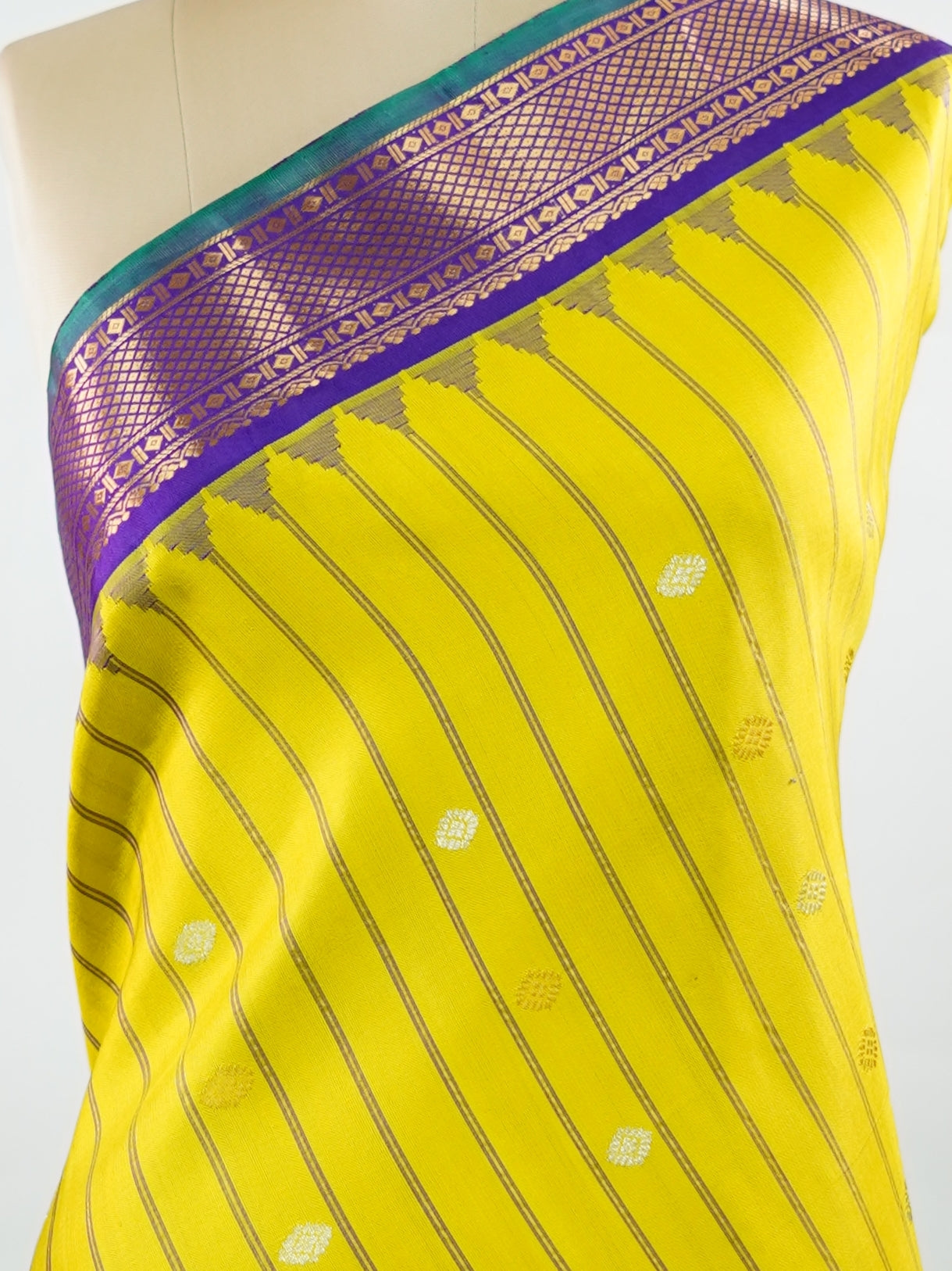 Our sarees are 100% Pure and they are all handwoven, unless mentioned otherwise in the saree description. So we request you to please read the saree specifications carefully. In a few of the sarees, there would be cross weaving between the body and the pallu, which is quite natural and is a sign of pure handlooms
