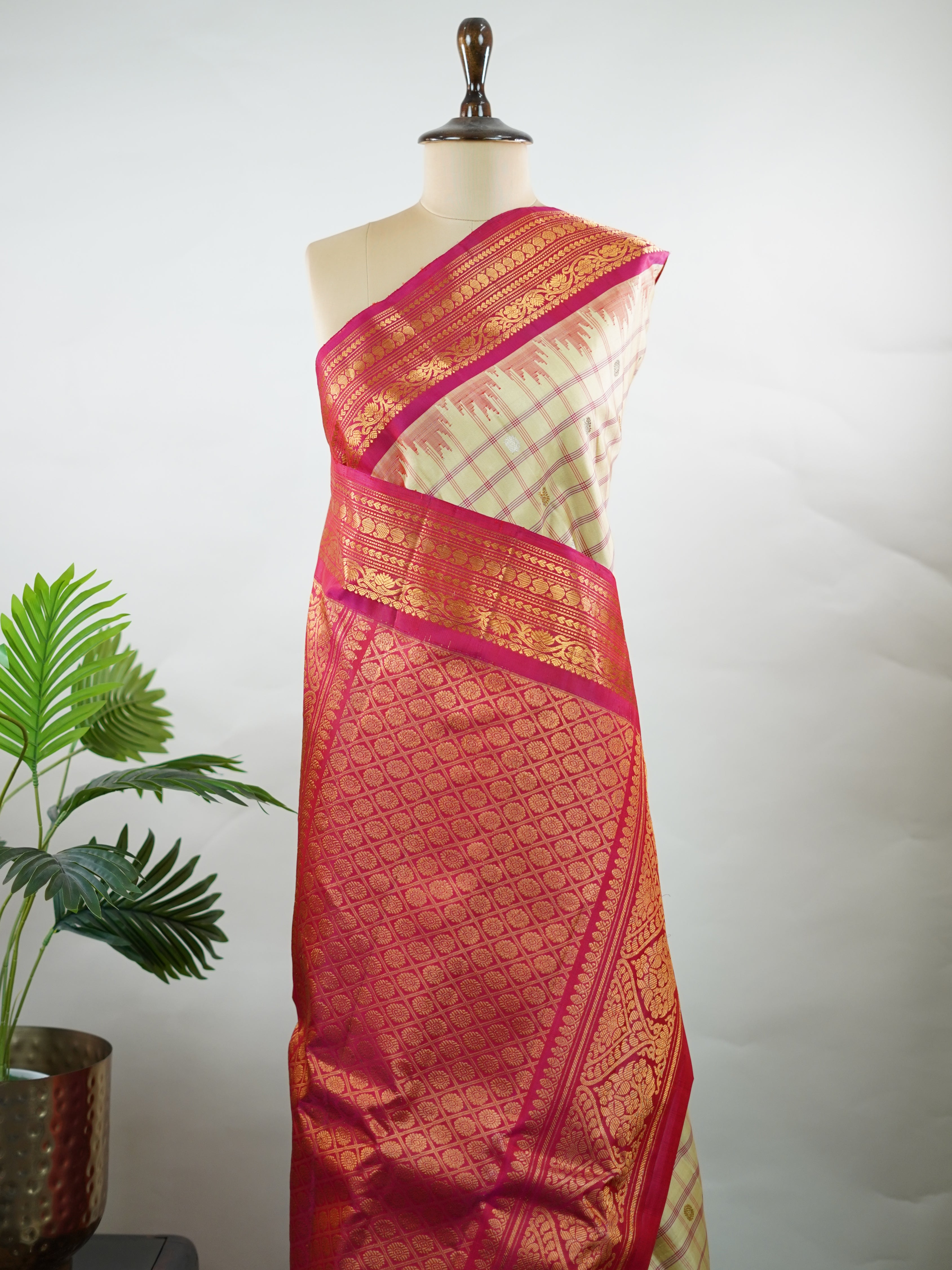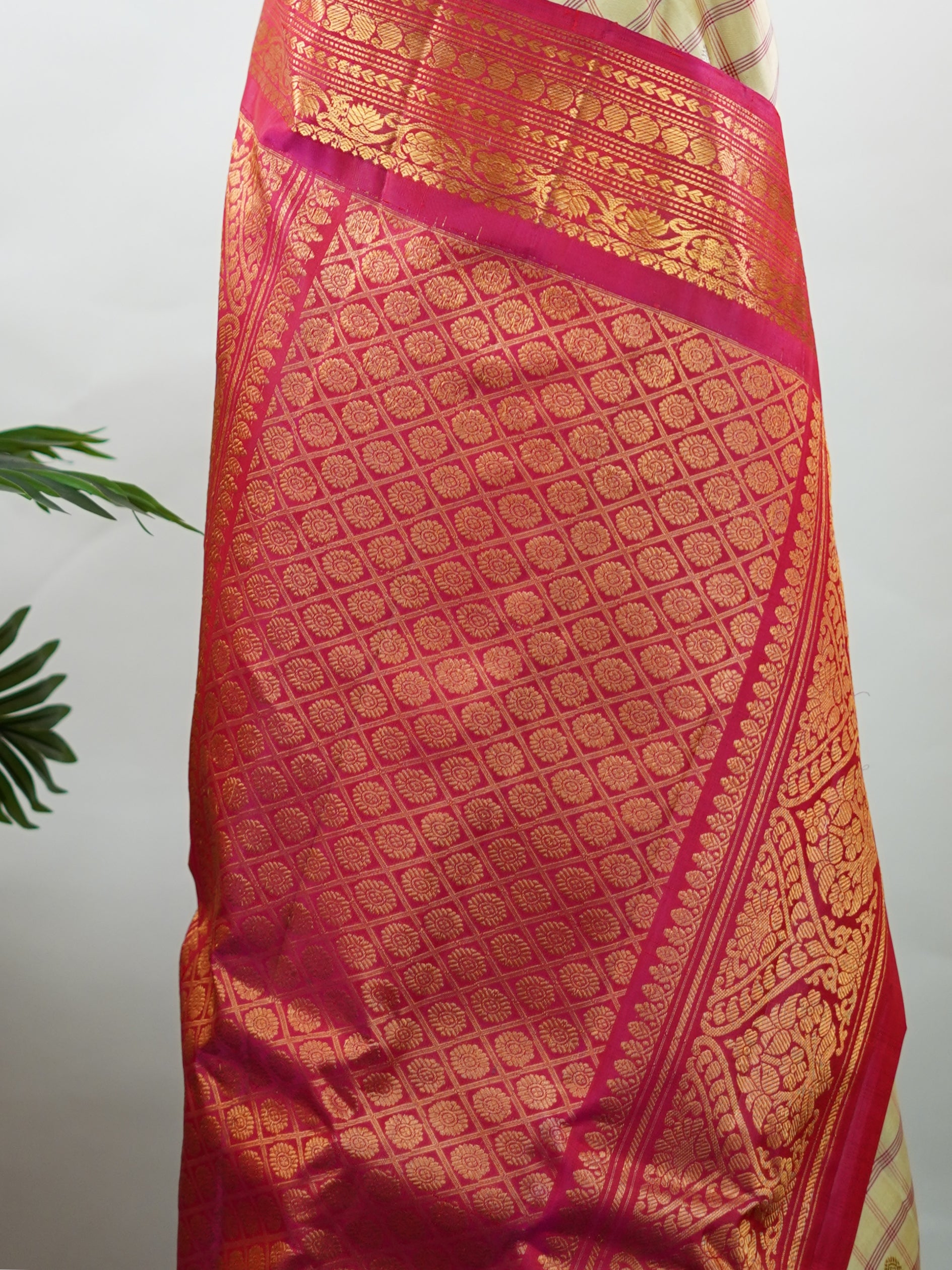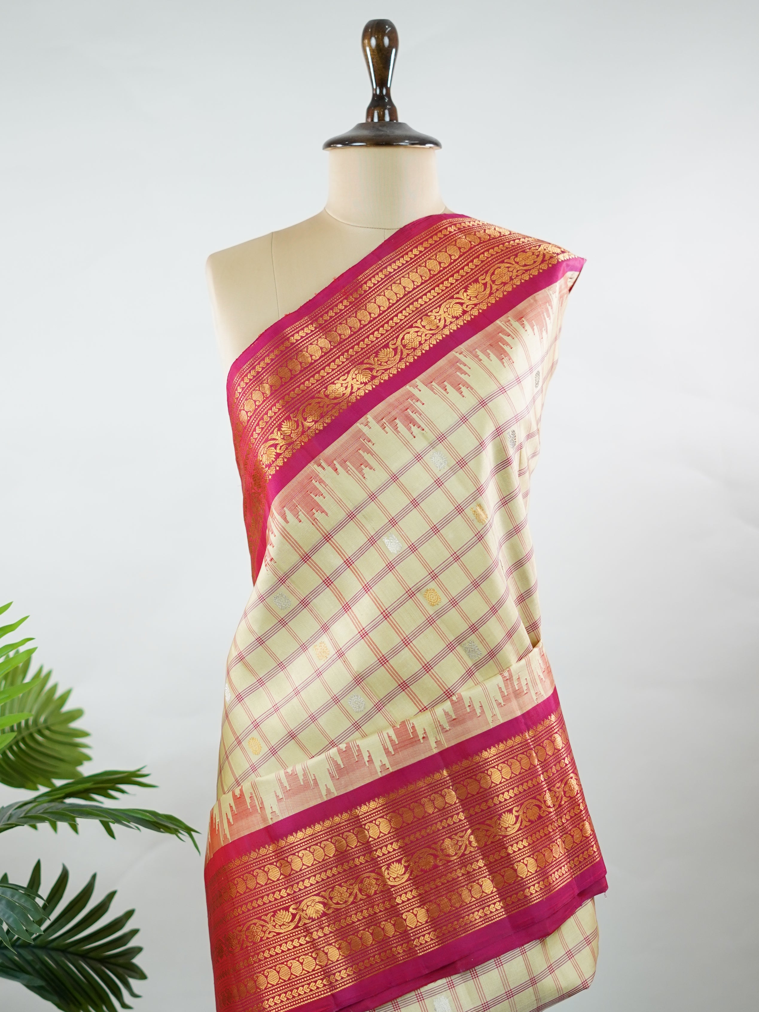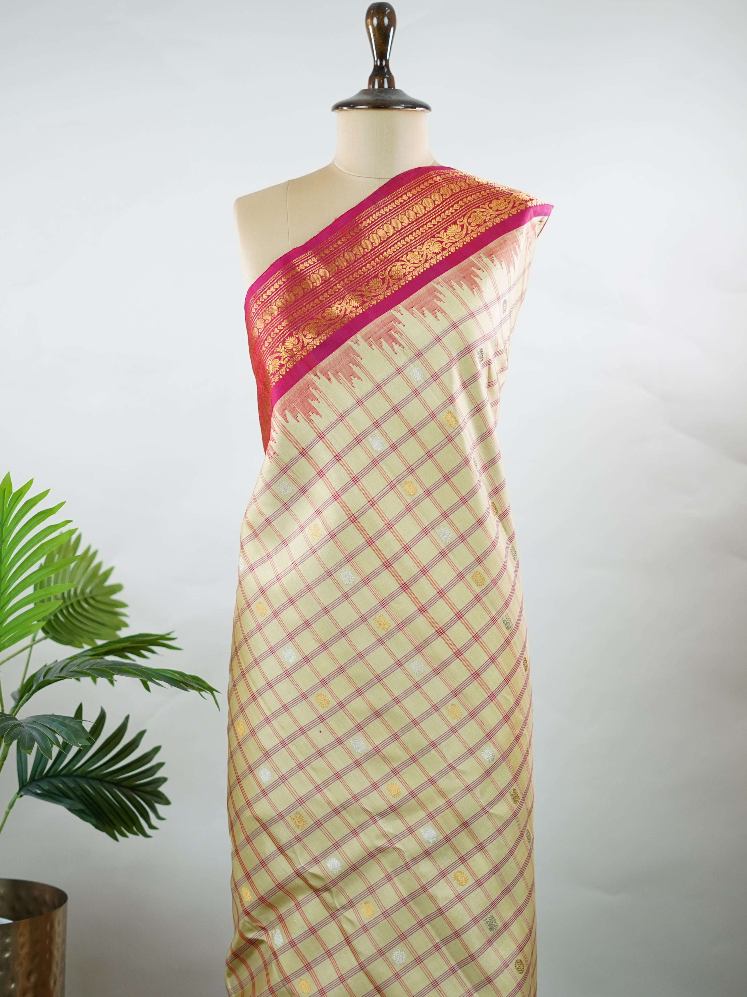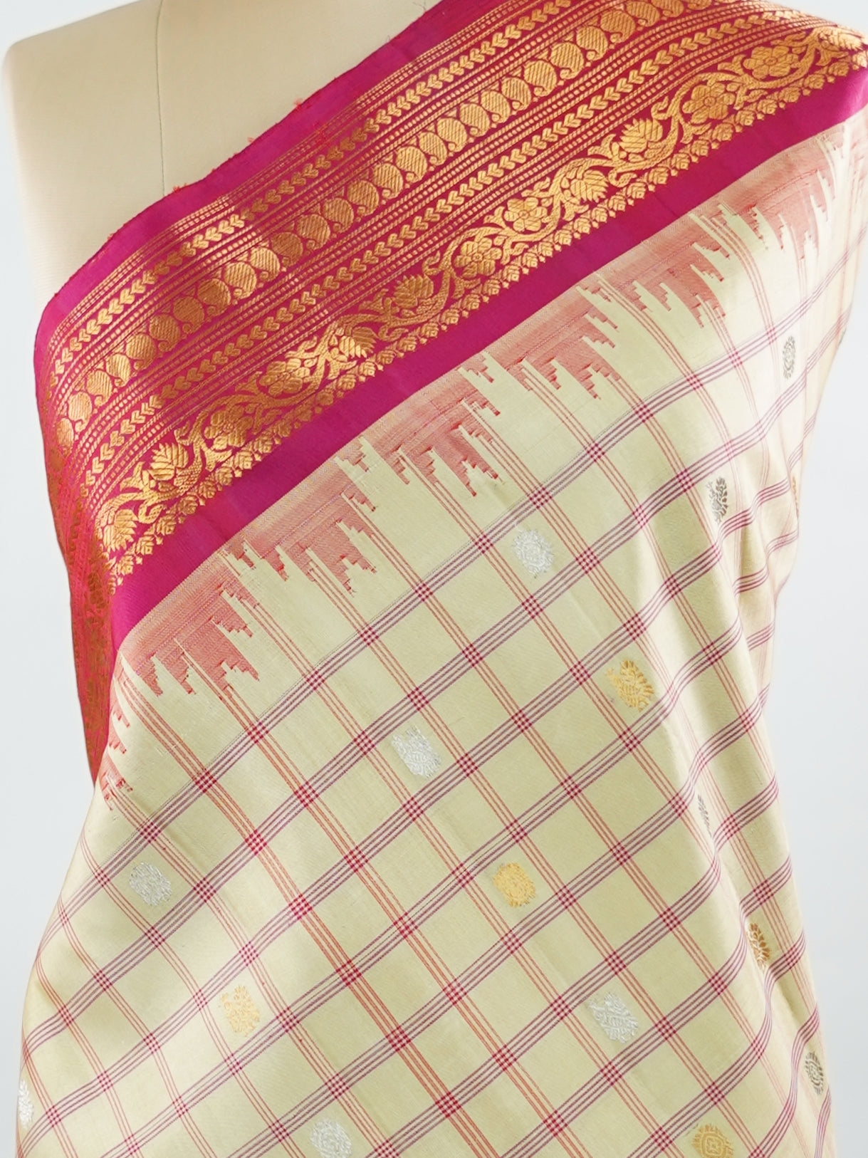 Our sarees are 100% Pure and they are all handwoven, unless mentioned otherwise in the saree description. So we request you to please read the saree specifications carefully. In a few of the sarees, there would be cross weaving between the body and the pallu, which is quite natural and is a sign of pure handlooms