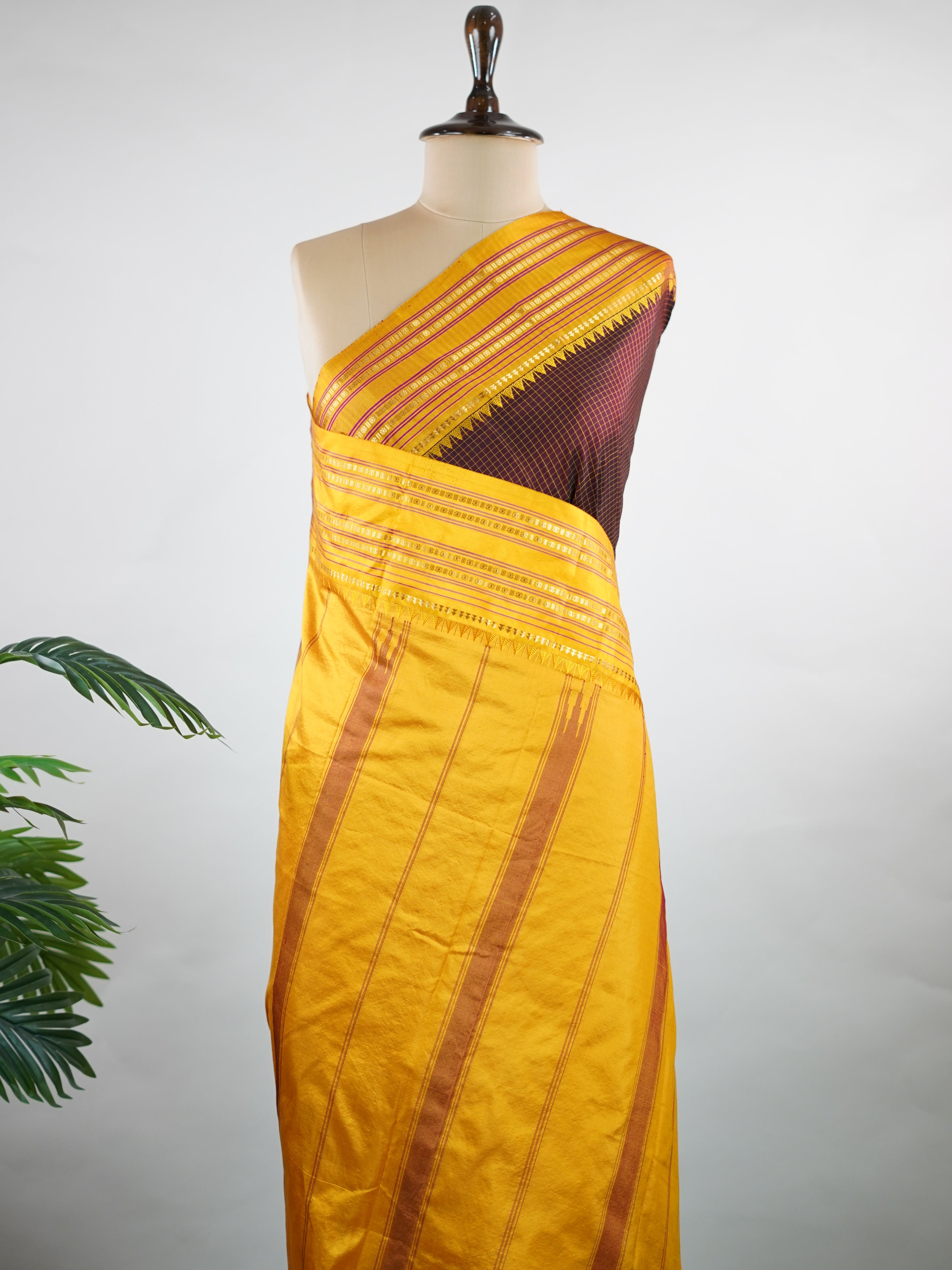 Our sarees are 100% Pure and they are all handwoven, unless mentioned otherwise in the saree description. So we request you to please read the saree specifications carefully. In a few of the sarees, there would be cross weaving between the body and the pallu, which is quite natural and is a sign of pure handlooms